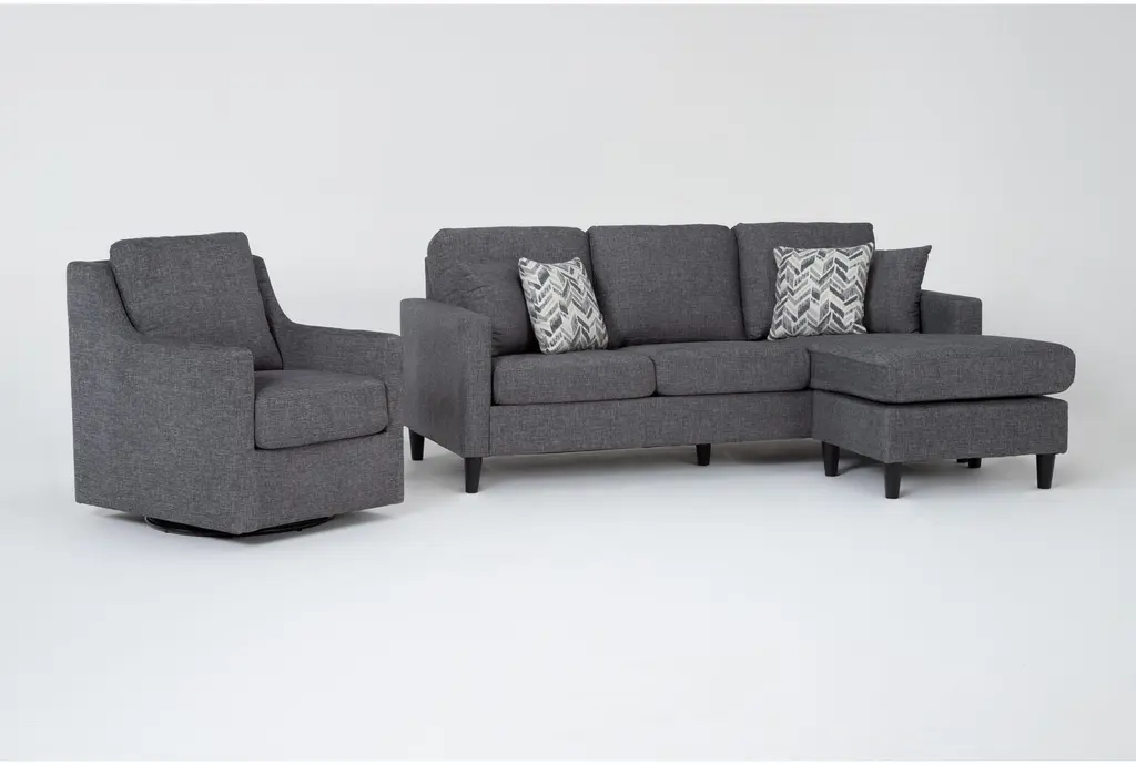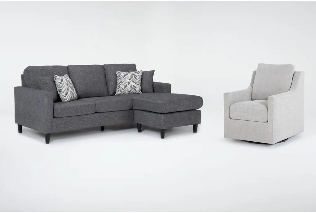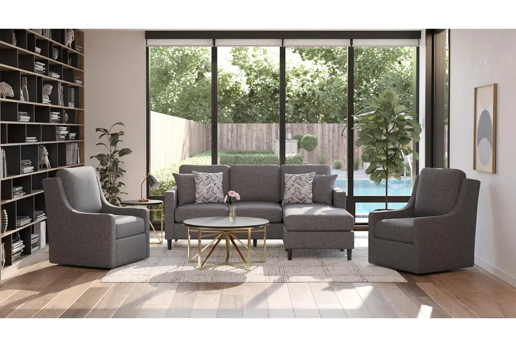 Where you lounge is an important decision, and our Stark collection has several enticing options to choose from. The designs are available in dark grey and light grey, including a sofa, sofa with reversible chaise and swivel chair. All offer sturdy, streamlined frames, Dacron-wrapped foam seating and cozy upholstery, so you can enjoy comfort and quality in every detail.