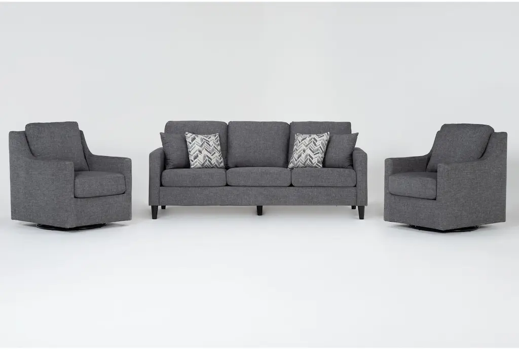 Stark Dark Grey Fabric Sofa With Reversible Chaise & 2 Dark Grey Fabric Swivel Armchairs | 2 Piece