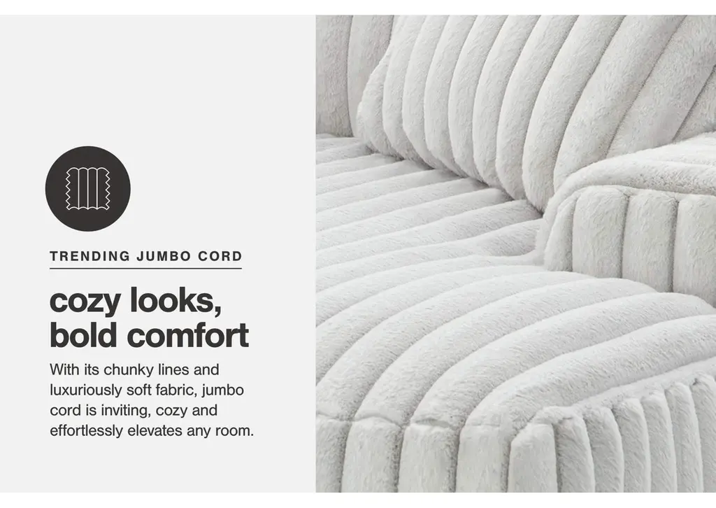 Don’t want to sacrifice standout style for majorly cozy seating? The Stupendous oversized chaise pairs bold character with sink-in comfort. Its retro-cool jumbo cord over feather-blend cushions creates a luxuriously soft lounging experience. Cup holders and USB charging help to keep essentials close. With this chaise, you can balance everyday relaxation and your unique eye for design. Weight 218.000 lbs. (98.1kgs.)
