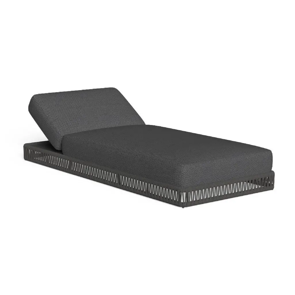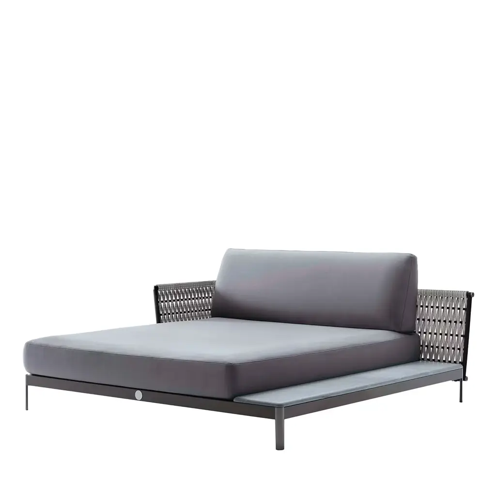 Stylish intertwined nautical ropes and geometric-patterned fabrics, give this Sunbed in Dark Gray a sense of playfulness with a look of superb style. An elegant and comfortable encounter between unexpected material combinations and the search for new styles, the Cliff collection is synonymous with great versatility. The modular structures and monotone coloring allow for total freedom in arranging the pieces.