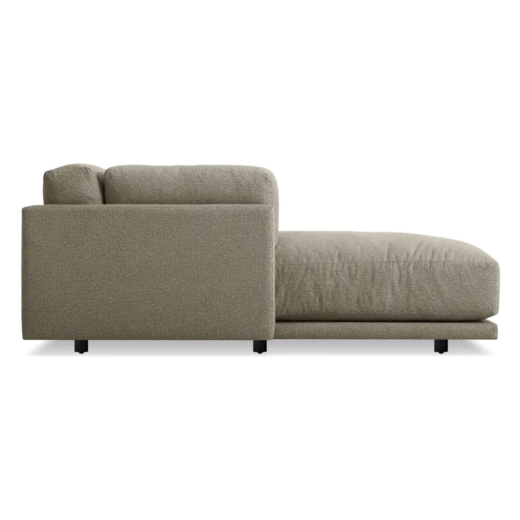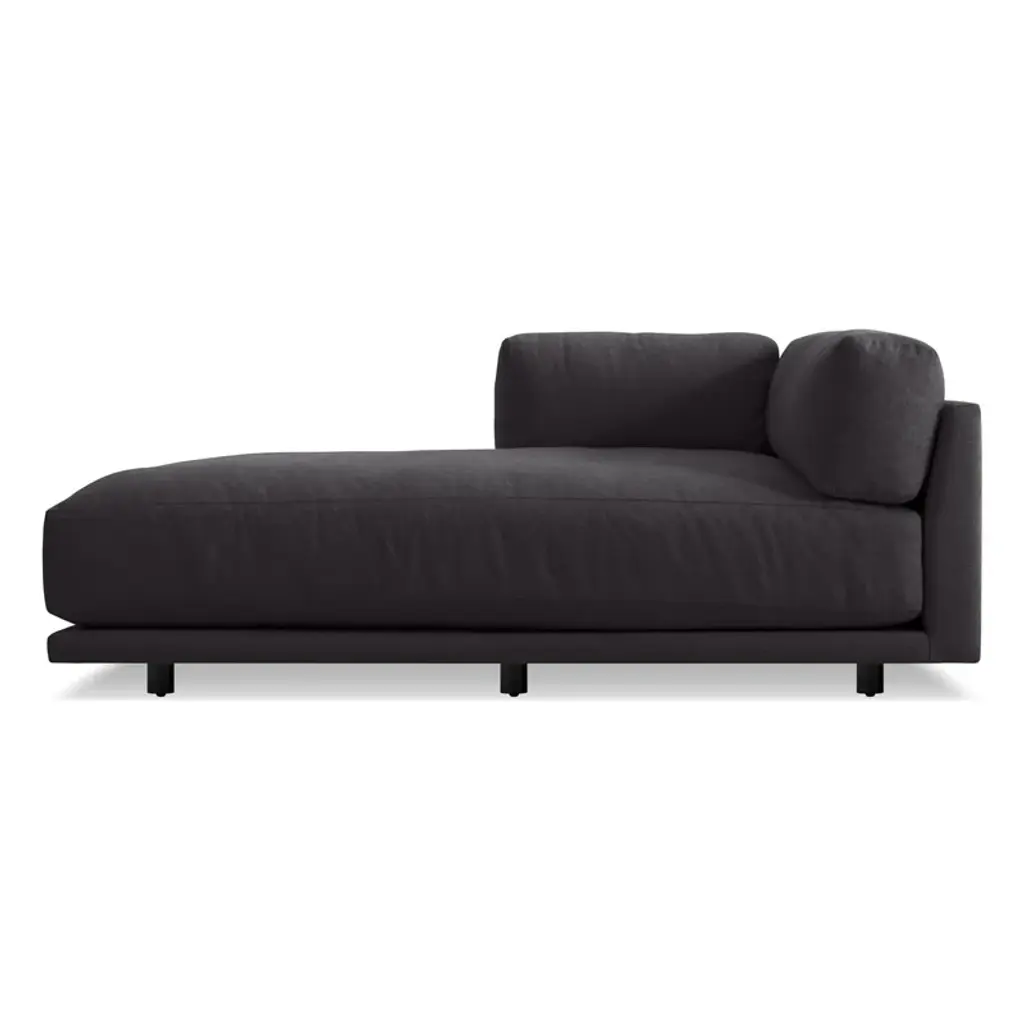 The Sunday Chaise by Blu Dot is a casually sophisticated chaise. Crafted with sturdy kiln-dried American hardwood and high resiliency foam wrapped in feather-and-down, this stylish, low-slung piece will catch your eye with its boxy twist on tradition, and invite you to relax in its ultra-deep cushioning. Features