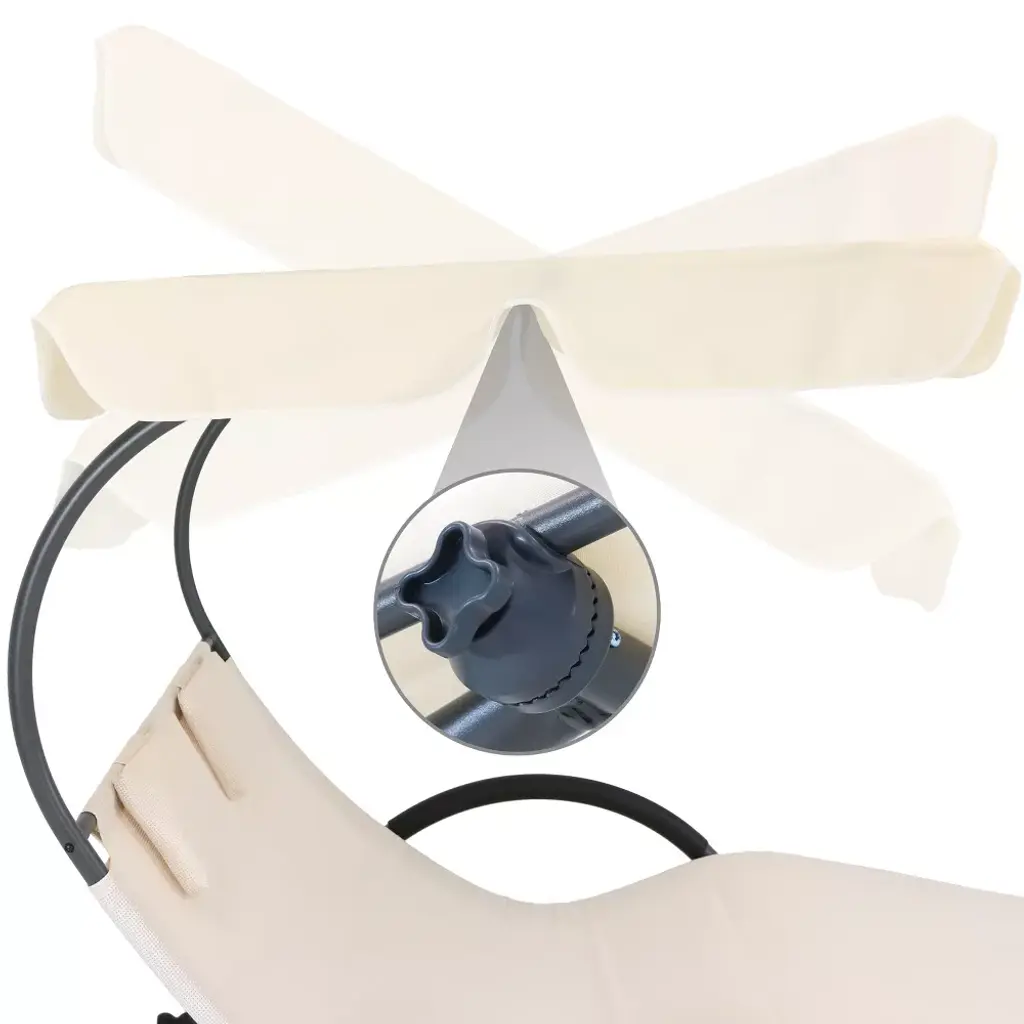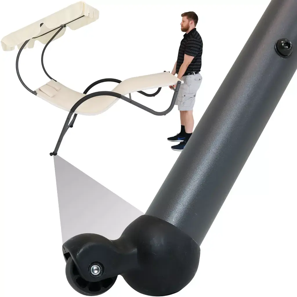 Transform any outdoor space into a tropical oasis with this cabana-style, 2-person, double chaise lounge chair featuring a convenient canopy and comfortable headrest pillows. The lounge chair can hold up to 2 adults and features an easy-to-maintain 70% vinyon fiber and 30% polyethylene cover with a polypropylene fiber filling that are resistant to the elements as well as a powder-coated steel frame for rust-resistance and extra durability. Plus, the wheels on the frame make it easy to move out of the way for yard work or to move across the yard for relocation whenever desired. With the modern design, relax the day away with a good book, nap, snacks, or a loved one on the patio, deck, yard, front porch, poolside, or other outdoor living space! The lounger comes complete with 2 headrest pillows and a canopy for shade from the sun. The canopy is adjustable for versatility with the sun's movement throughout the day.• LARGE 2-PERSON SIZE: This double chair lounger measures 54" W x 79" D x 70" H, weighs 56 lbs, and has a weight capacity of 440 lbs. The seat measures 48" W x 82" D x 13" H. Each armrest measures 2" W x 29" D x 24" H. The canopy measures 51" W x 44" D (not including scalloped overhang edge) x 6.5" H (scalloped overhang).• DURABLE CONSTRUCTION: The portable sunbed features a 70% vinyon fiber and 30% polyethylene cover with a polypropylene fiber filling and a powder-coated steel frame with wheels.• COMFORTABLE DESIGN: Recline and rest on the comfortable headrest pillows while enjoying the shade of the adjustable canopy by the pool or on the patio, porch, and deck.• EASY TO CLEAN AND MAINTAIN: Outside lounge furniture piece has a powder-coated steel frame that is resistant to rust. Easily spot clean the sling seat with a clean, damp cloth.• WORRY-FREE PURCHASING: Sunnydaze Decor backs its products with a 1-year manufacturer's warranty.