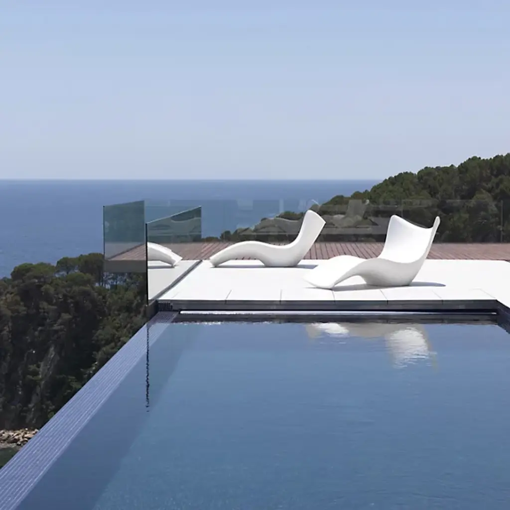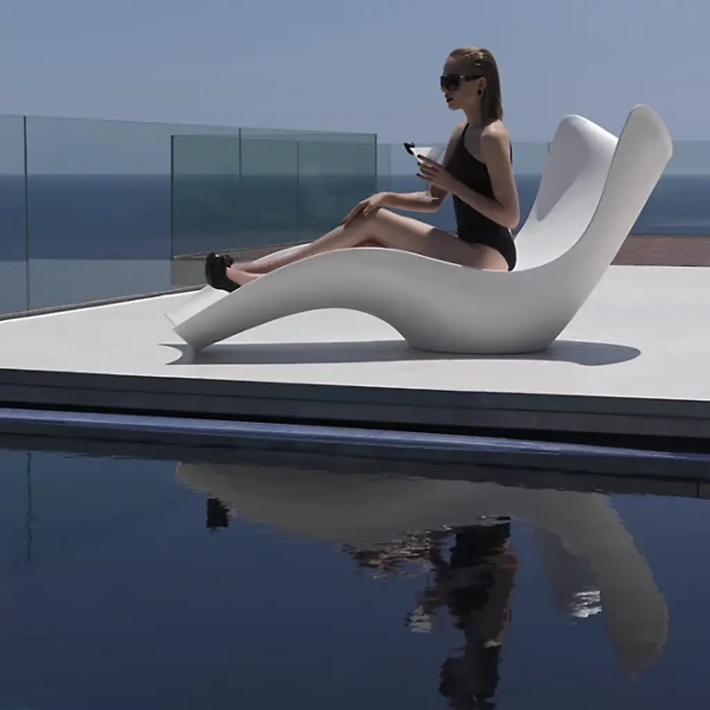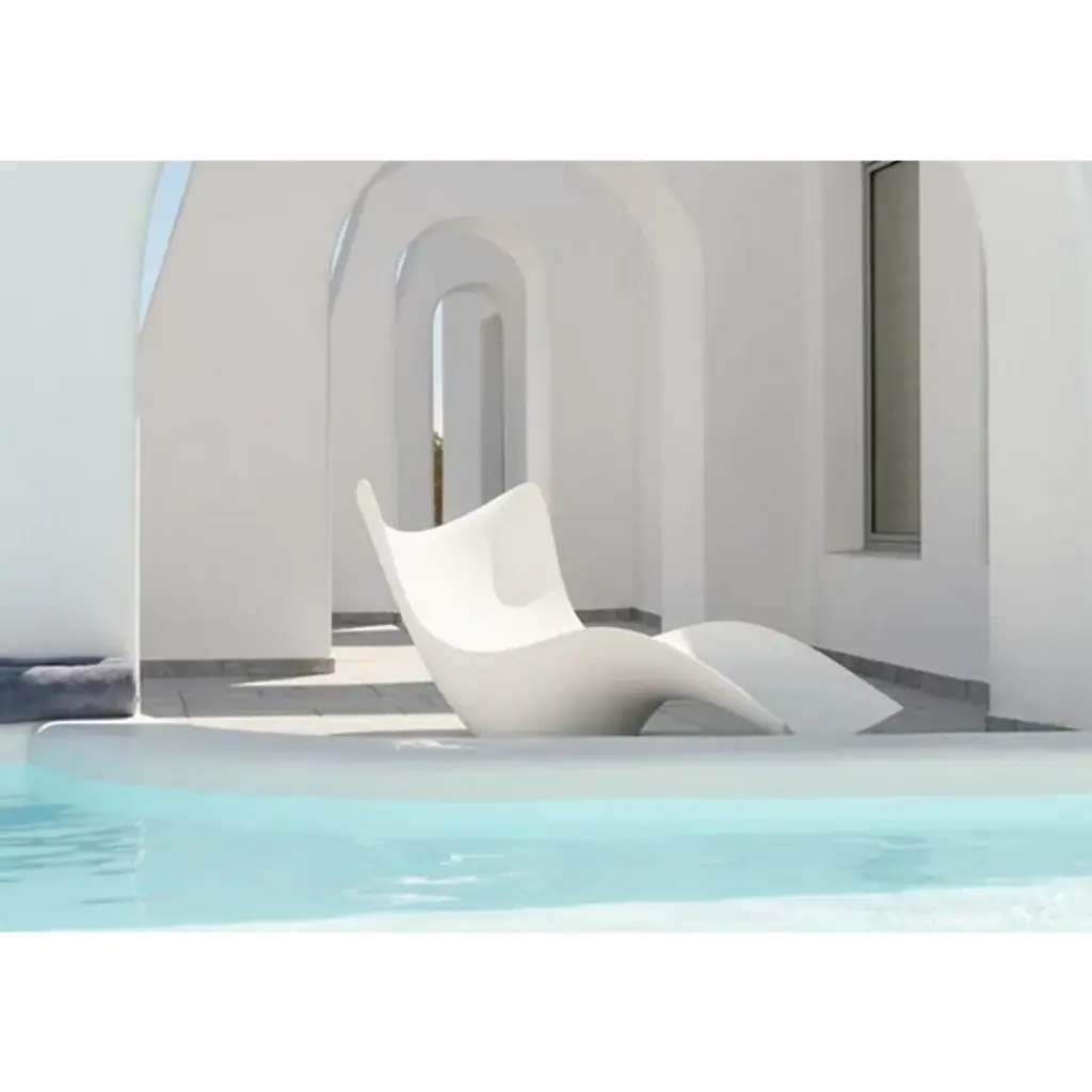 A sense of calm created by a wave-like design. The Surf Sun Chaise by Vondom is a fluid curve of matte white rotation molded polyethylene, molded just so for maximum comfort. More than ergonomics, designer Karim Rashid crafted its curves to give the Surf Sun Chaise a sculptural appearance that changes as the light does. This outdoor chair creates a sense of calm and relaxation thanks to its fluid silhouette, calling to mind a soft ocean swell.