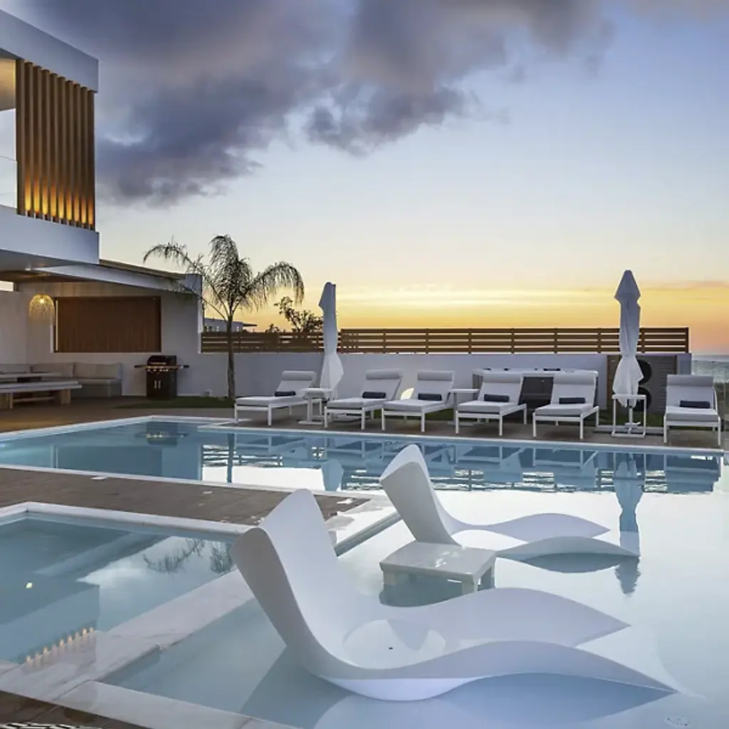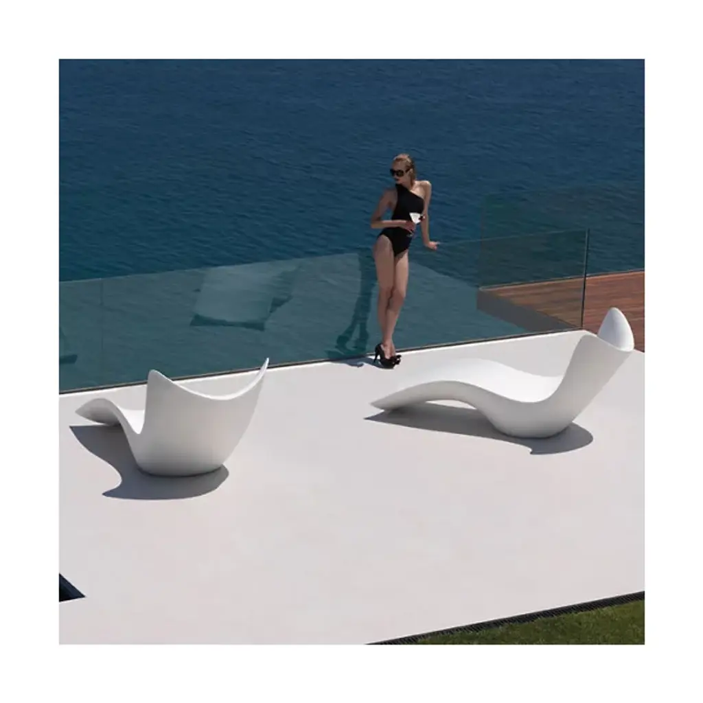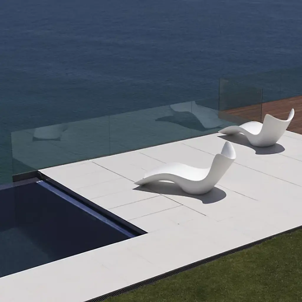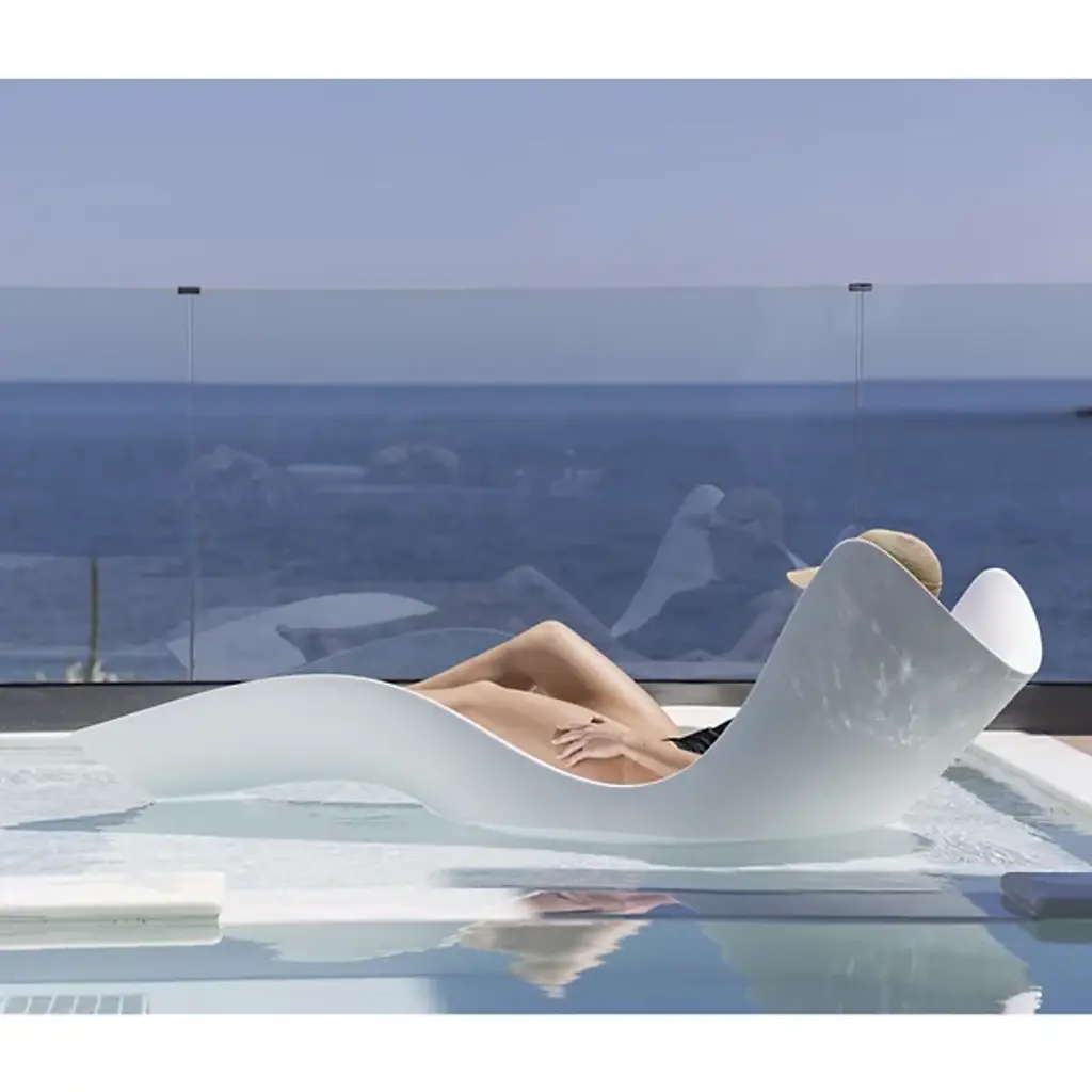 A sense of calm created by a wave-like design. The Surf Sun Chaise by Vondom is a fluid curve of matte white rotation molded polyethylene, molded just so for maximum comfort. More than ergonomics, designer Karim Rashid crafted its curves to give the Surf Sun Chaise a sculptural appearance that changes as the light does. This outdoor chair creates a sense of calm and relaxation thanks to its fluid silhouette, calling to mind a soft ocean swell.