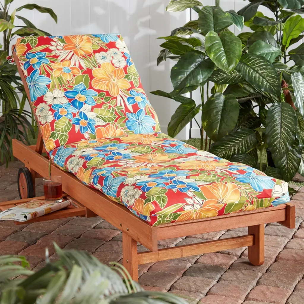 Relax in style with the Outdoor Chaise Cushion from Kensington Garden. Featuring a smooth, single hinge design for a more contemporary look for your patio space. Long-lasting comfort is what you can expect from the channel insert design filled with soft, recycled poly-fiber. Our durable outdoor polyester fabric resists fading, repels water, stains and spills, and is available in a wide variety of colors and patterns. Use with other KG cushions and pillows for a coordinated look. To prolong the life of our cushions and keep them looking beautiful, we recommend storing them indoors or covered when not in use.