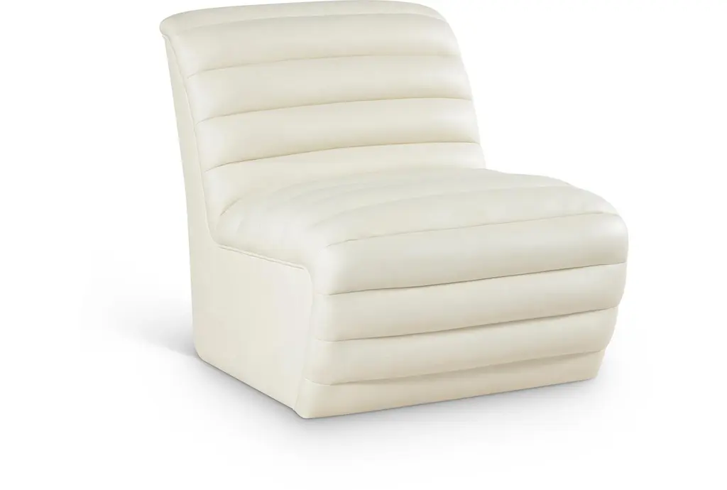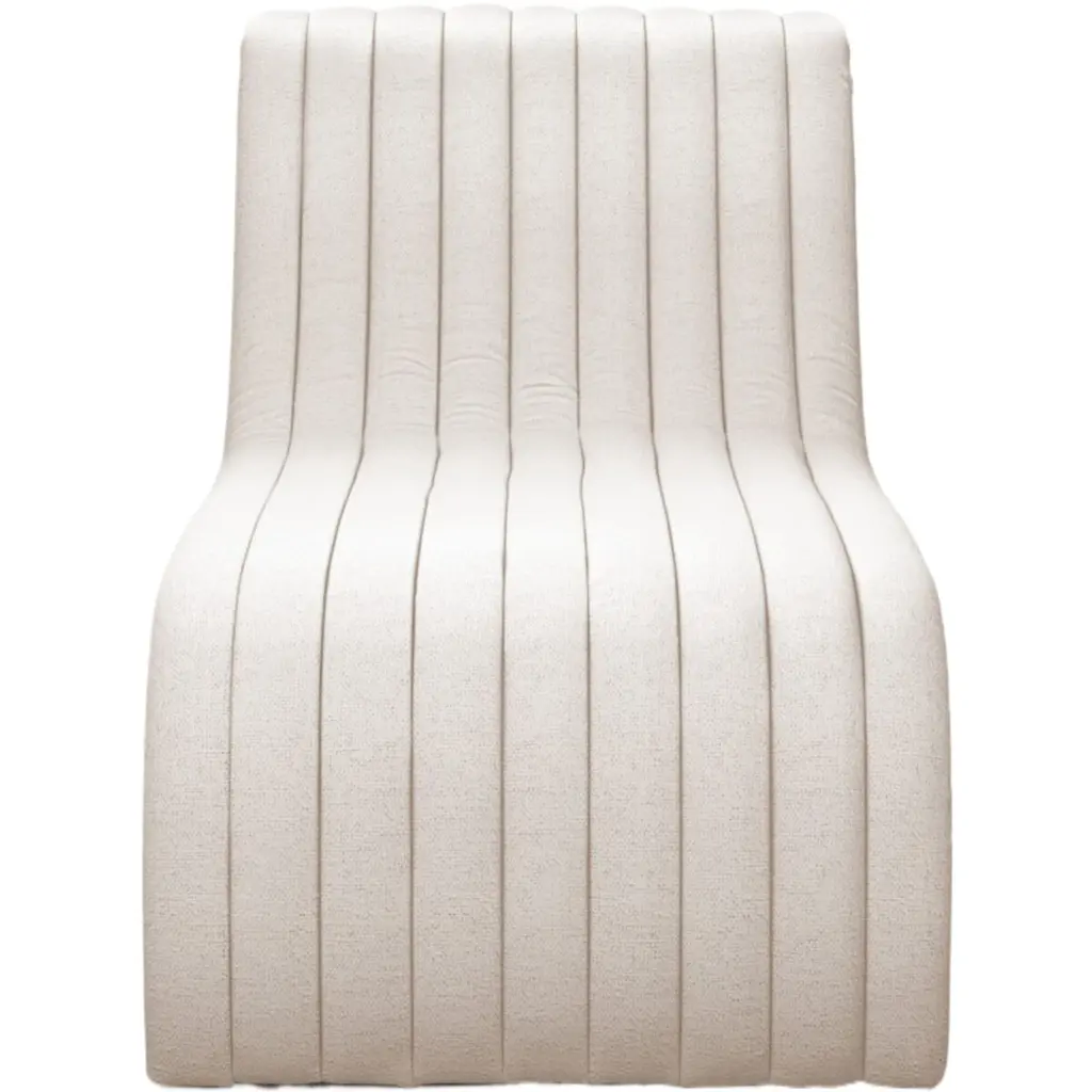 The Vivian Chaise Lounge is a modern take on the classic chaise, designed to provide both texture and comfort. It features dramatic linear channeling that enhances its aesthetic appeal while ensuring a comfortable seating experience. This chaise lounge is crafted with attention to detail, making it a stylish addition to any living space.