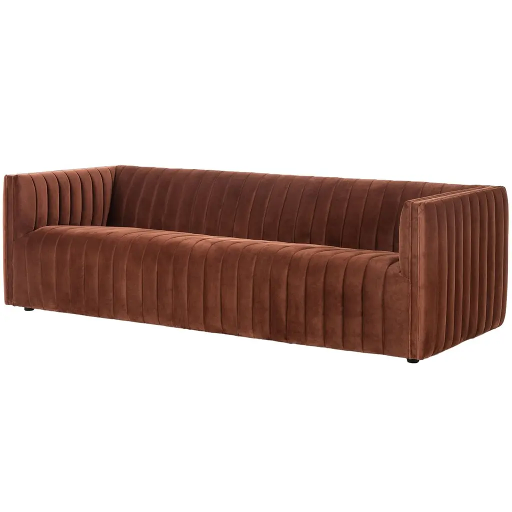 The Vivian Chaise Lounge is a modern take on the classic chaise, designed to provide both texture and comfort. It features dramatic linear channeling that enhances its aesthetic appeal while ensuring a comfortable seating experience. This chaise lounge is crafted with attention to detail, making it a stylish addition to any living space.