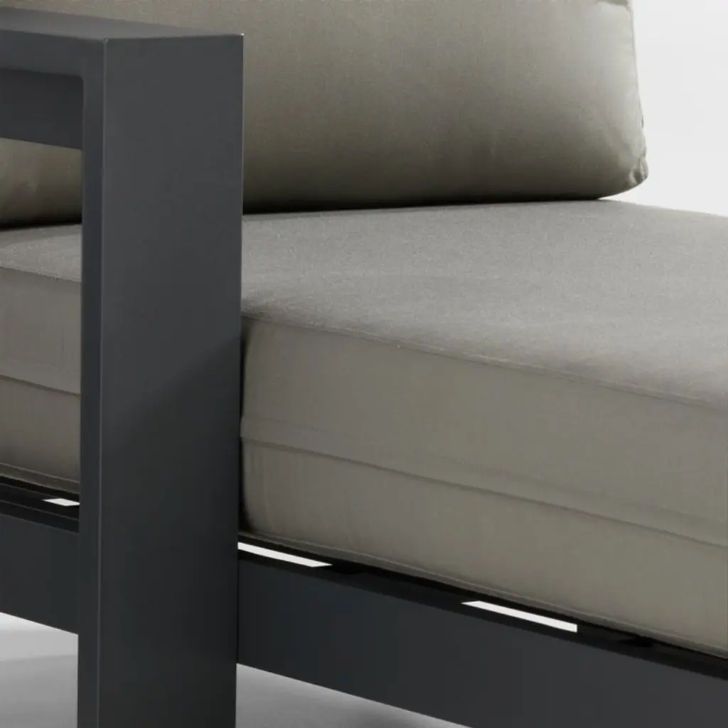 Well-made, great-looking and super comfortable. Our Walker outdoor sectional sofa collection is a customer favorite that checks all the boxes. Built to stand up to the elements, the sectional is made of rustproof aluminum treated with a durable and stylish matte powdercoat finish. Cushions in your color choice of stain-resistant Sunbrella fabric let you sink back and relax in deep-seated comfort. A modern classic, Walker is designed with architectural lines, wide armrests and recessed detailing.