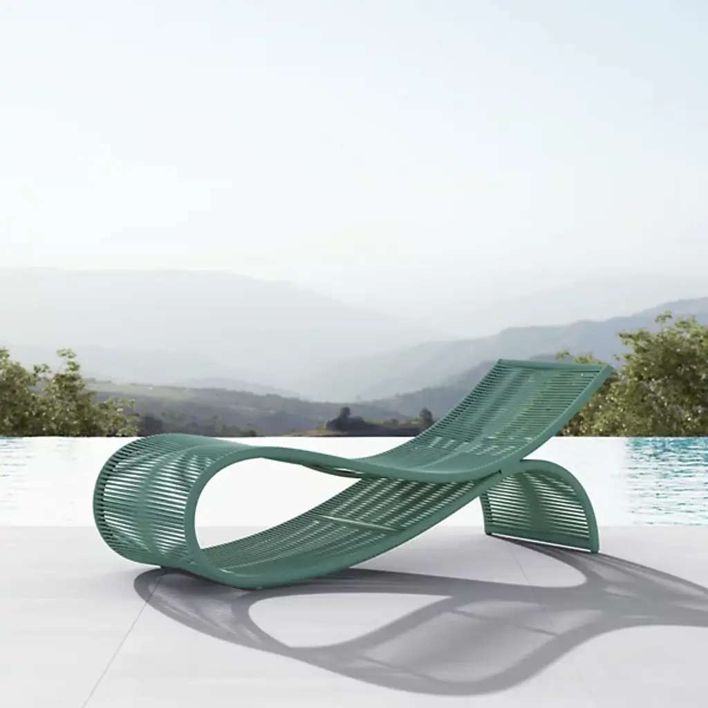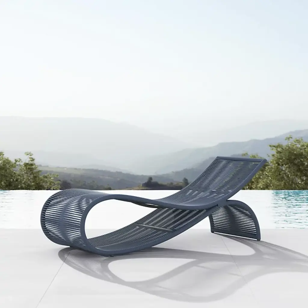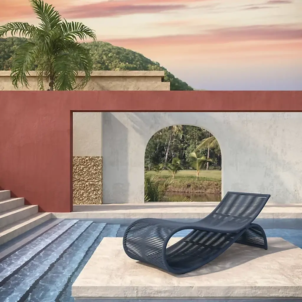 The Wave Outdoor Chaise Lounge from Azzurro Living extends the body's natural reclining motion into a continuous sculptural arc. Its elongated form creates a dramatic horizontal presence where textelene rope wrapping follows the chair's sweeping contours in precise, parallel lines. The design achieves visual lightness through careful material distribution, while built-in levelers ensure stability across varied terrain. This chaise turns relaxation into an artistic statement through its fluid geometry and masterful integration of comfort with sculptural form.