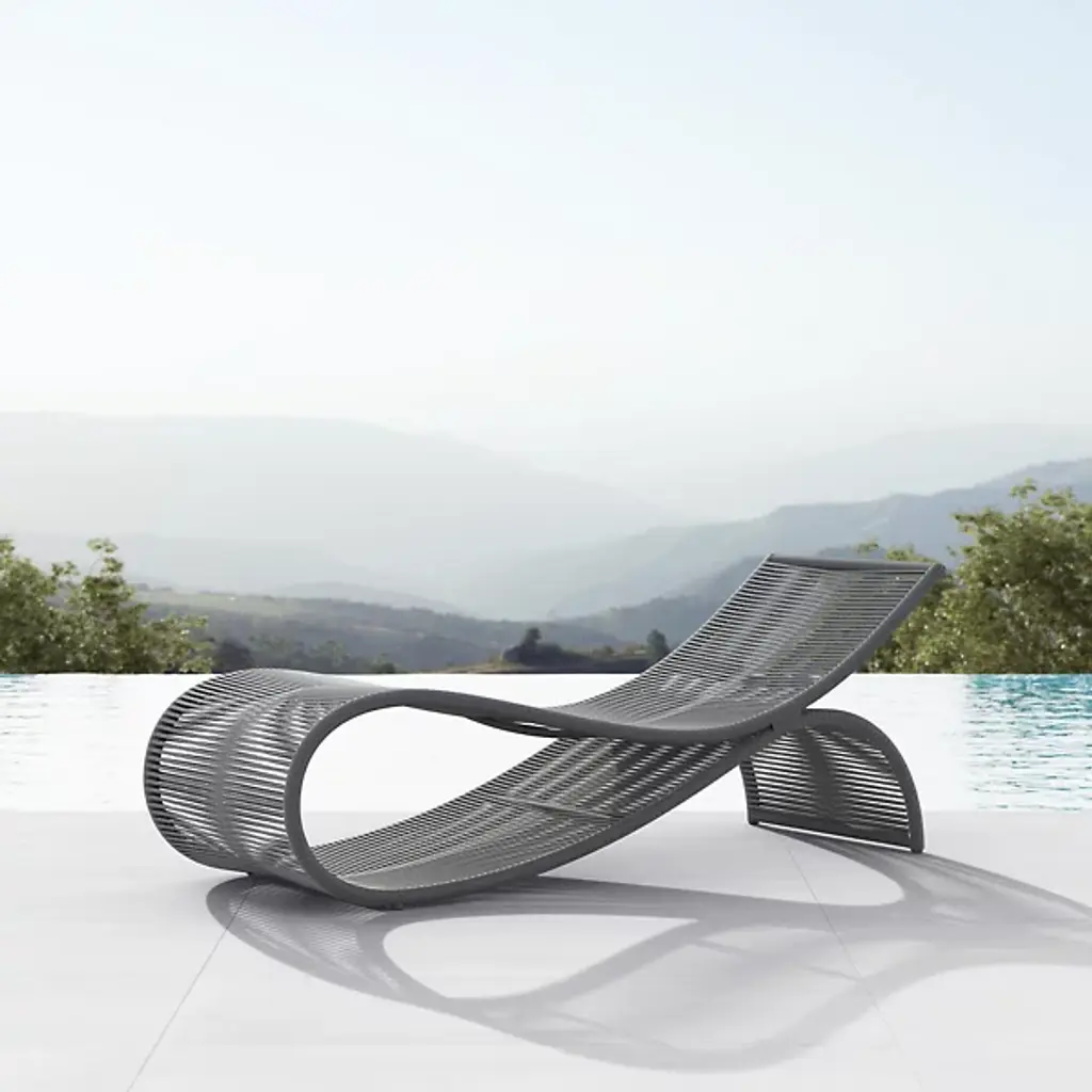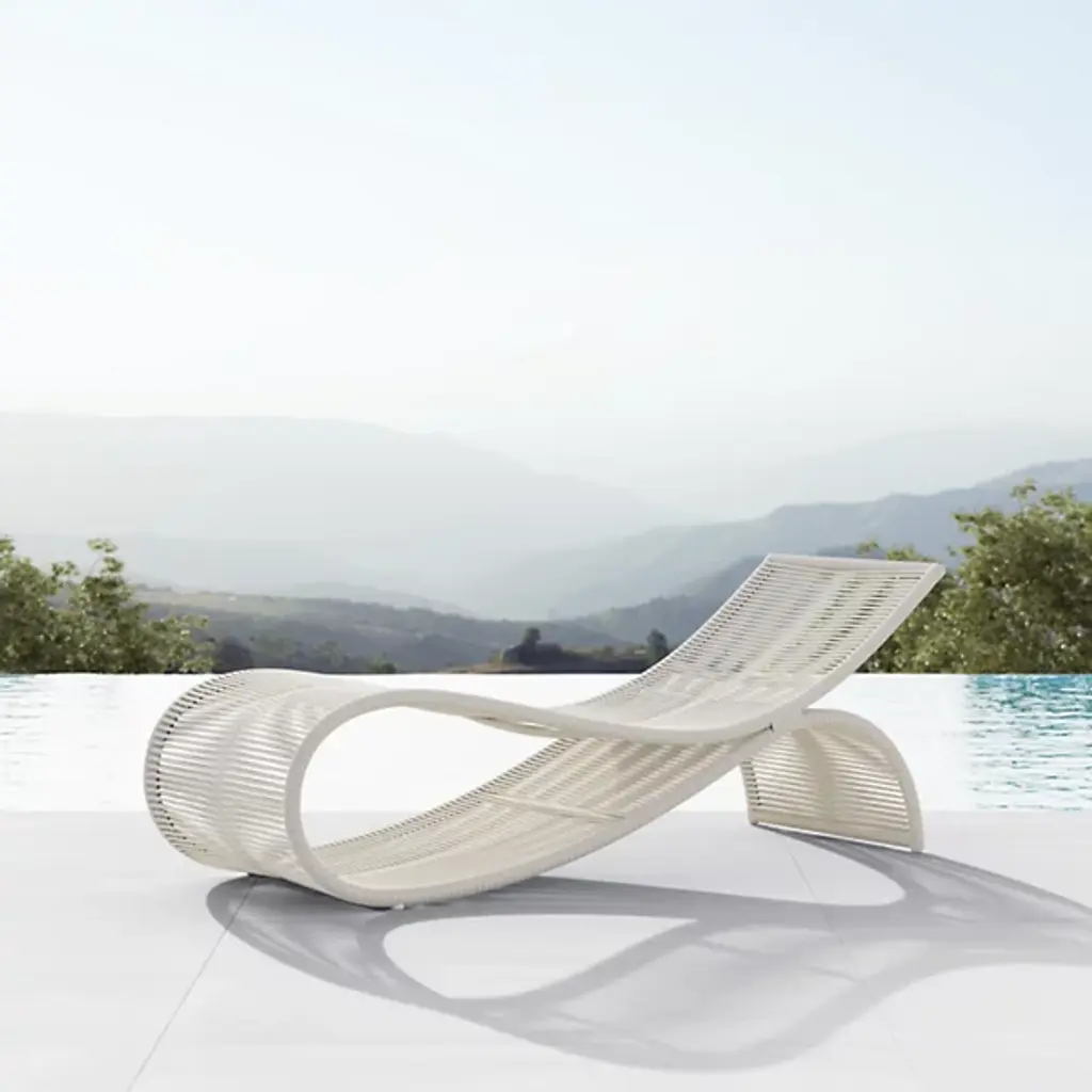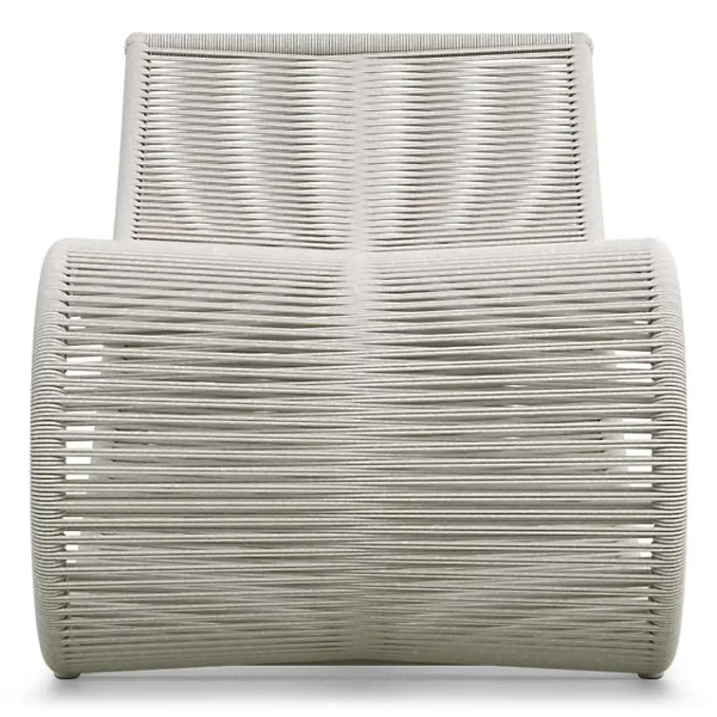 The Wave Outdoor Chaise Lounge from Azzurro Living extends the body's natural reclining motion into a continuous sculptural arc. Its elongated form creates a dramatic horizontal presence where textelene rope wrapping follows the chair's sweeping contours in precise, parallel lines. The design achieves visual lightness through careful material distribution, while built-in levelers ensure stability across varied terrain. This chaise turns relaxation into an artistic statement through its fluid geometry and masterful integration of comfort with sculptural form.