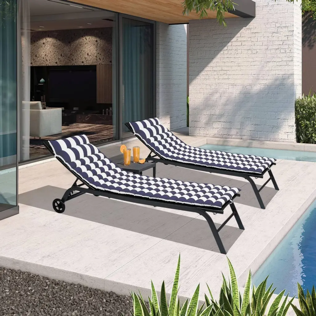 Wellfor 2Pc Chaise Lounge Outdoor Cushion Set Blue & White Stripe: Uv-resistant, Removable Cover, Sponge Fill