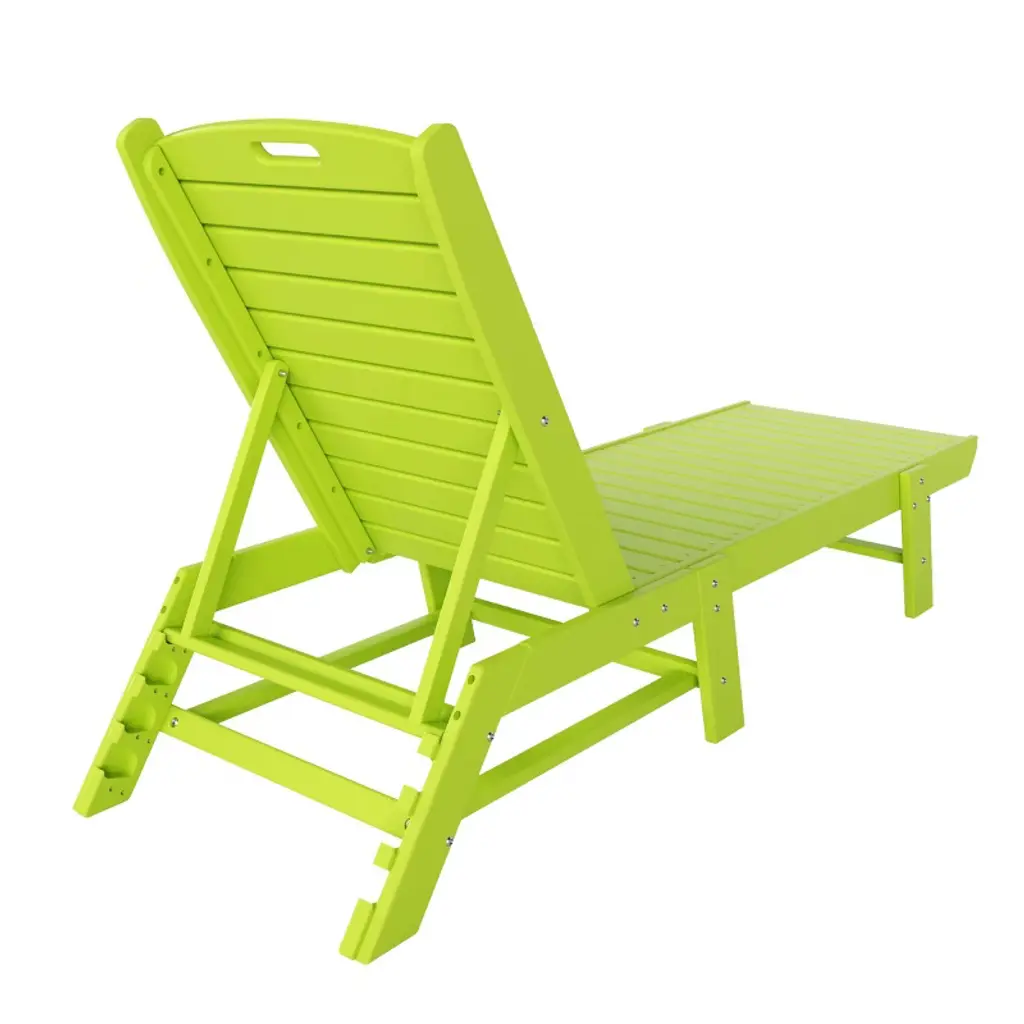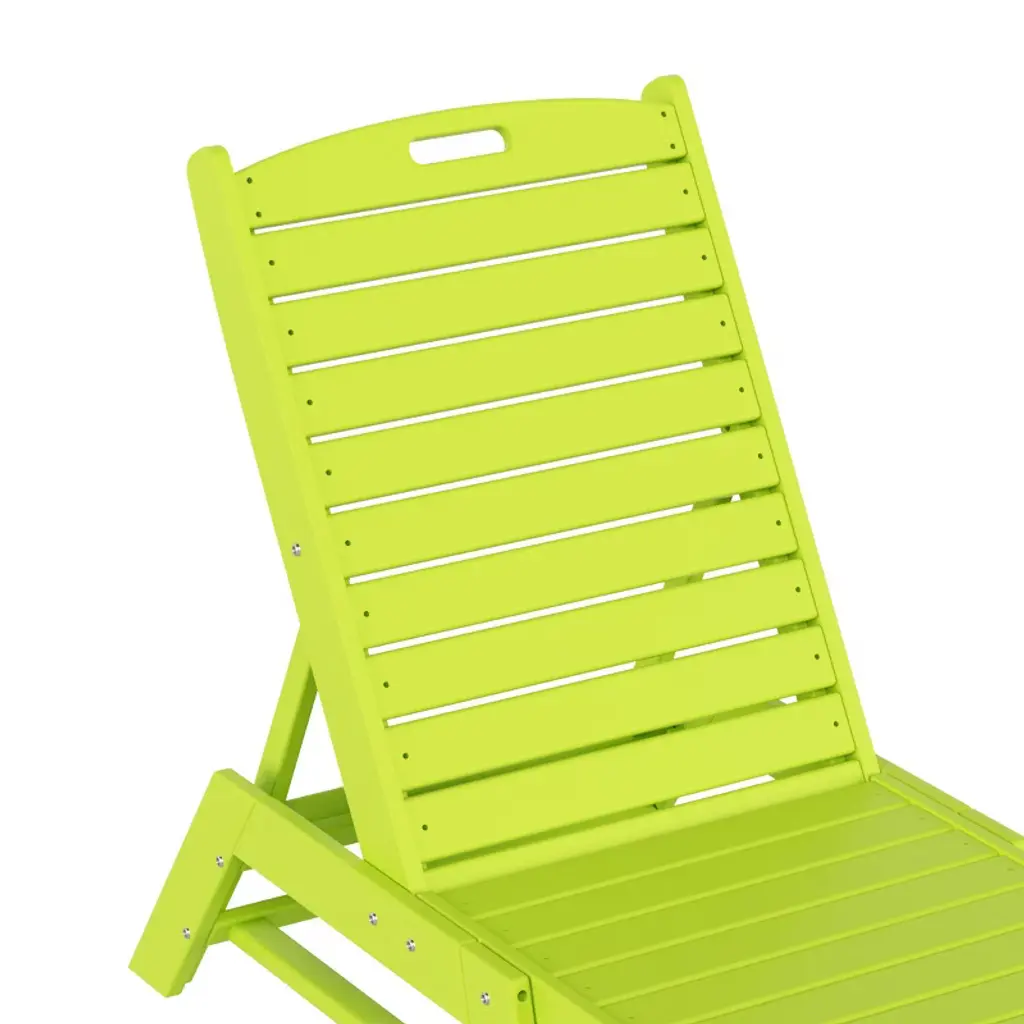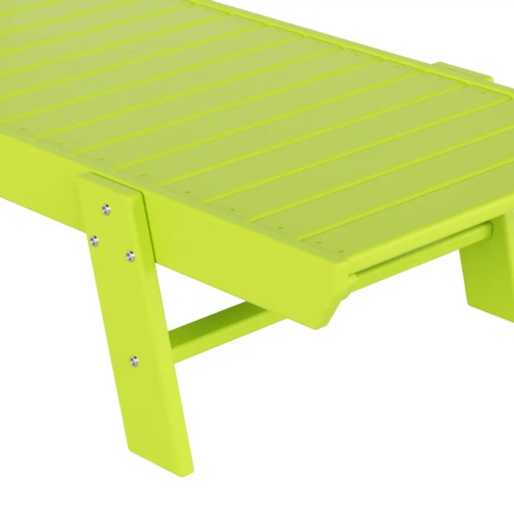 Sit out and relax in the sun with this lovely chaise lounge and side table set that brings a little bit of the beach into your own backyard. The armless design makes it more spacious, and the adjustable back lets you change the position of the back from reclined to lying down with ease. Move the lounge with ease thanks to a convenient handle in the headrest, and it's easy to store thanks to the chair's flat-folding design. The superior all-weather HDPE material will look great all year and is sure to spruce up your backyard.While we strive to accurately represent product colors, please be aware that actual colors may vary slightly due to individual screen settings and lighting conditions. FeaturesSet includes: One (1) 78" Lounge Chair , One (1) Side TableBackrest can be adjusted in 5 different positions for the perfect seatMade with eco-friendly HDPE lumberUV and weather resistant treated materialFade resistant colors to protect the vibrant color all season longFold flat to store away with easeConvenient handle in headrest to move lounge with easeDetails:Product Type: Patio Chaise LoungesWhat's Included: (1) Chaise Lounge; (1) Side TableChaise LoungeDimensions: 22.75" W x 78.25" D x 38" HWeight: 66 lbs.Seat Width: 21"Seat Depth: 46.5"Seat Height: 11.75"Weight Capacity: 450 lbs.Table Top Width: 14"Table Top Depth: 14"Table Top Thickness: 0.5"Side TableDimensions: 14" W x 14" D x 18" HWeight: 9 lbs.Table Top Width: 14"Table Top Depth: 14"Table Top Thickness: 0.5"Weight Capacity: 180 lbs.