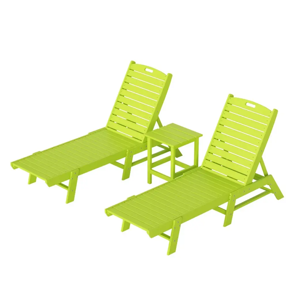 Westintrends 3 Pieces Poly Outdoor Patio Chaise Lounge Chair With Side Table Set, Lime