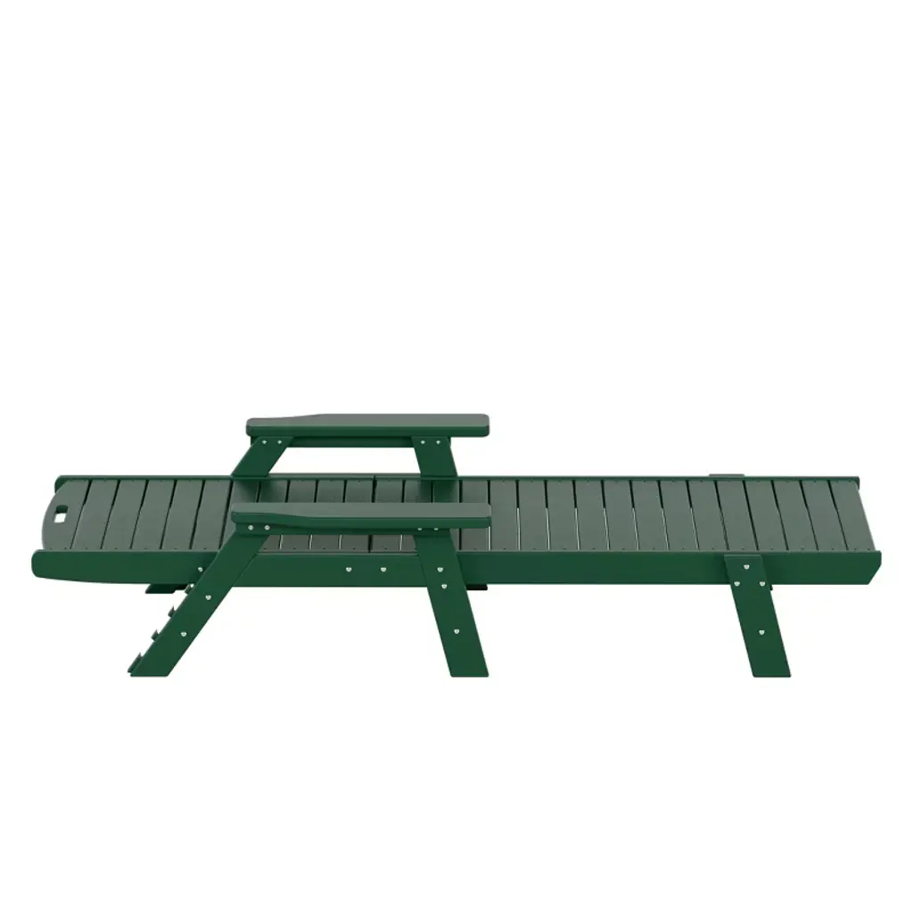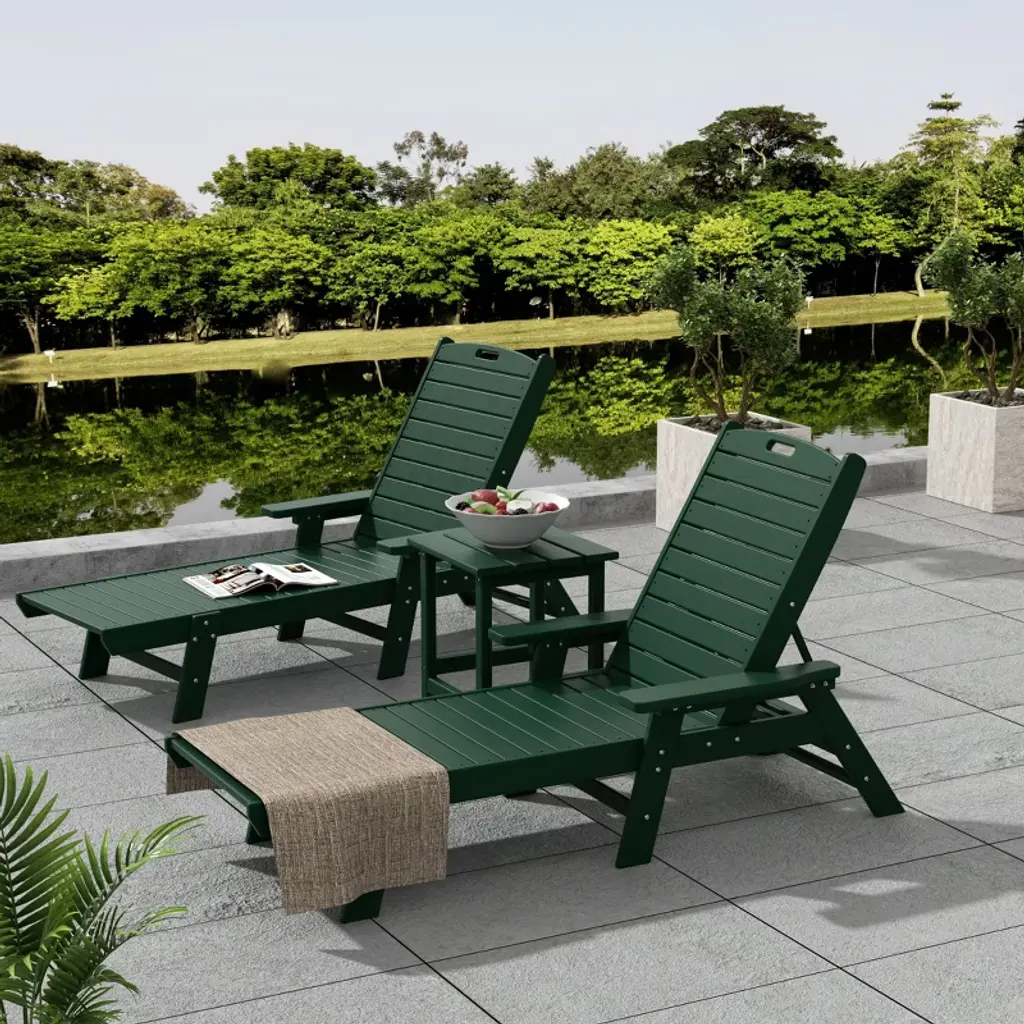 Westintrends 3 Pieces Set Poly Adirondack Outdoor Chaise Lounges With Side Table, Dark Green