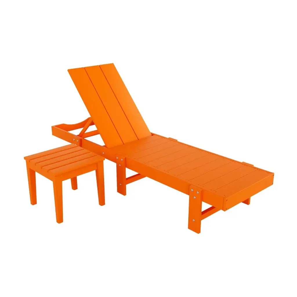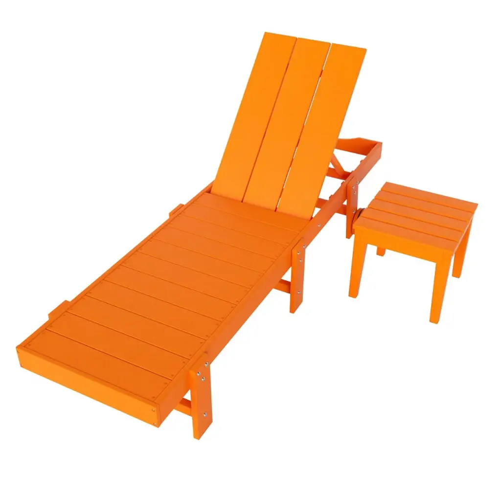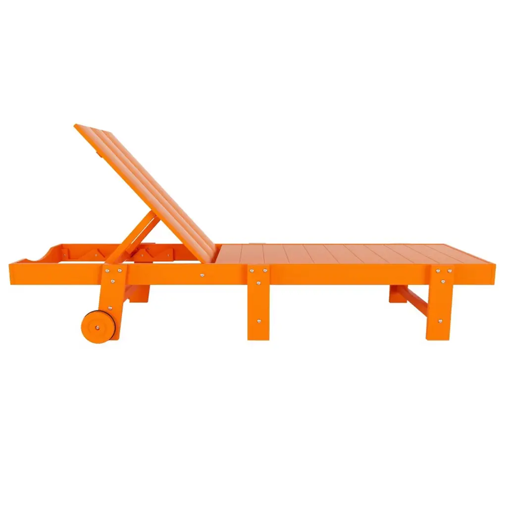 Westintrends Ashore Modern Poly Reclining Chaise Lounge With Wheels Plus Side Table Included, Orange