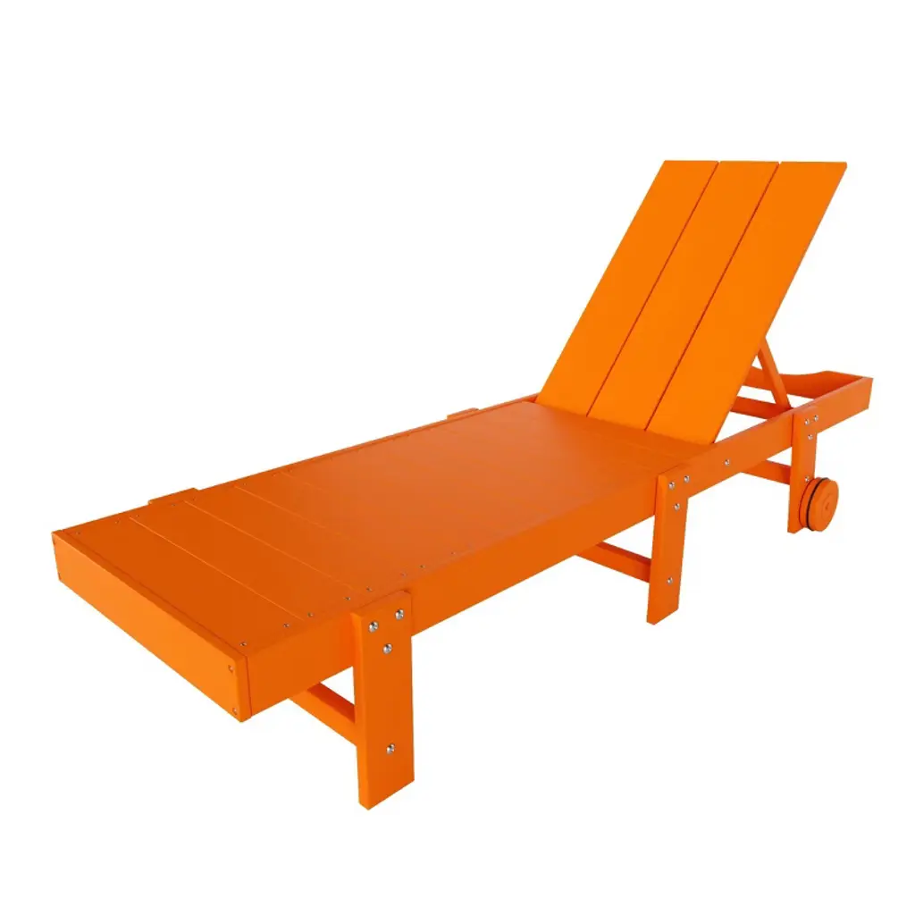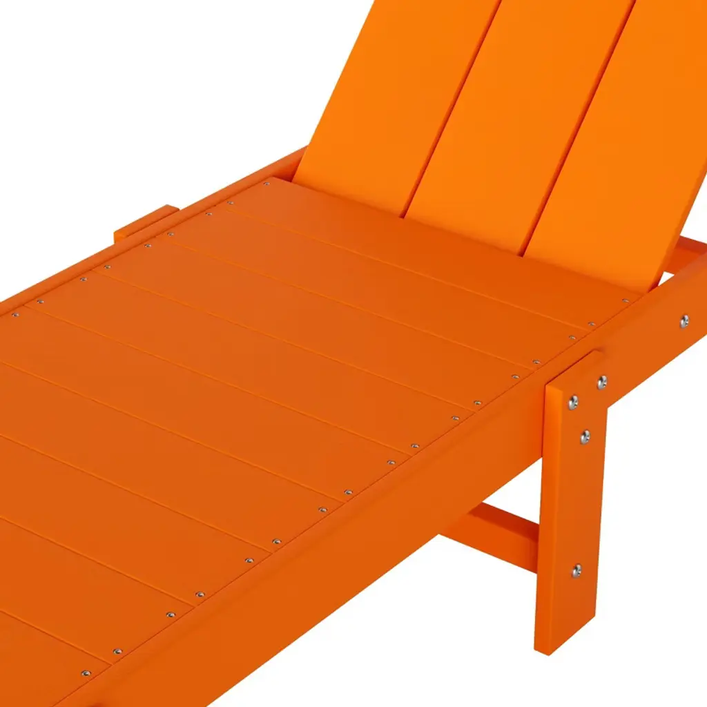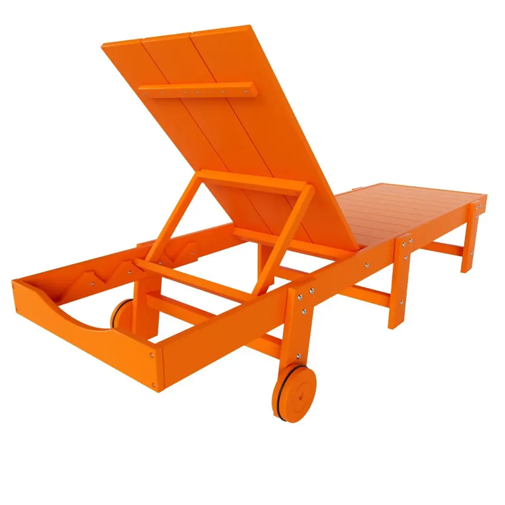 Westintrends Ashore Modern Poly Reclining Chaise Lounge With Wheels Plus Side Table Included, Orange