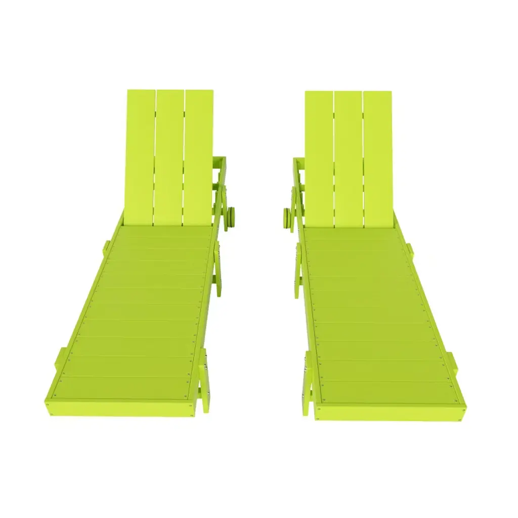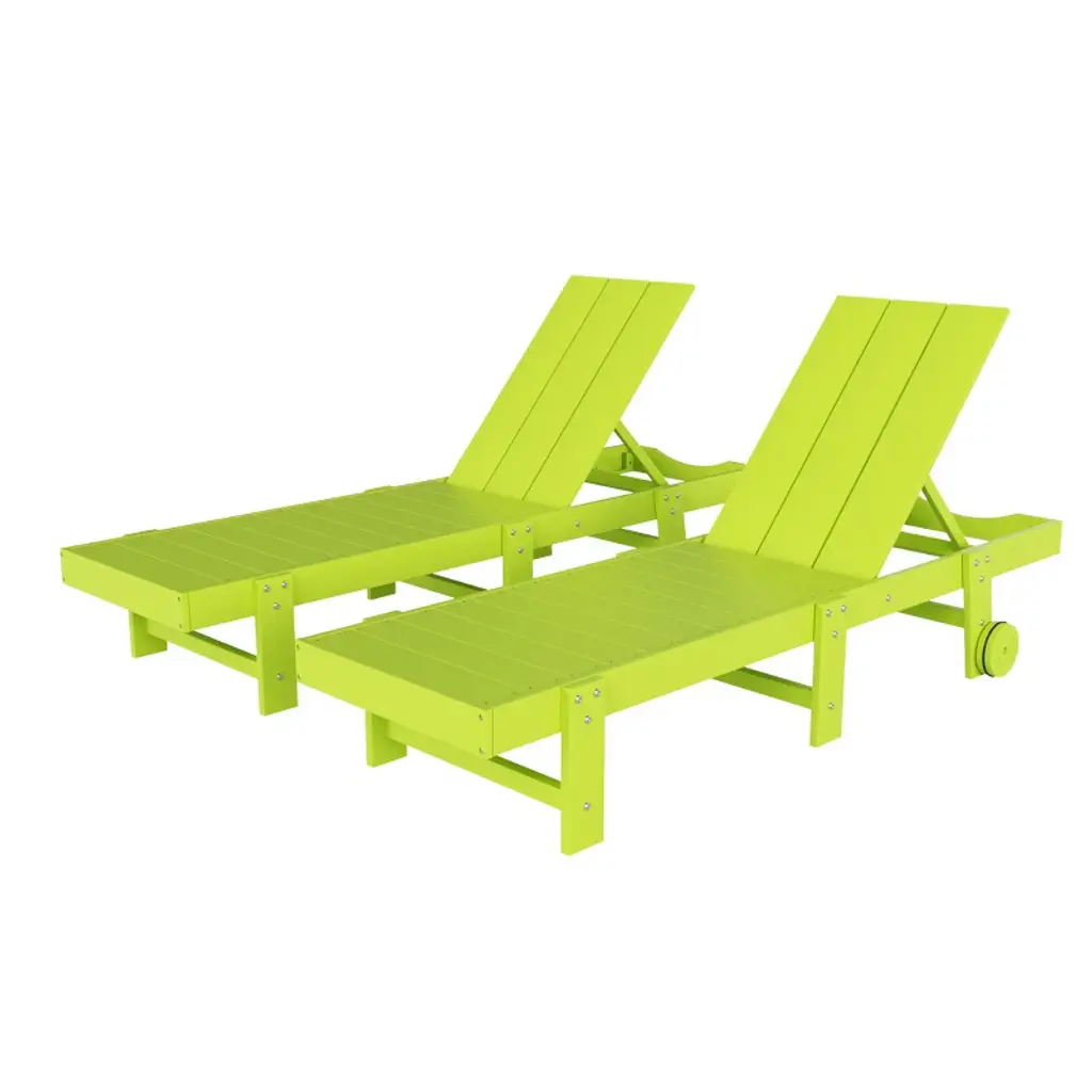 Westintrends Ashore Modern Poly Reclining Chaise Lounge With Wheels (Set Of 2Pcs), Lime