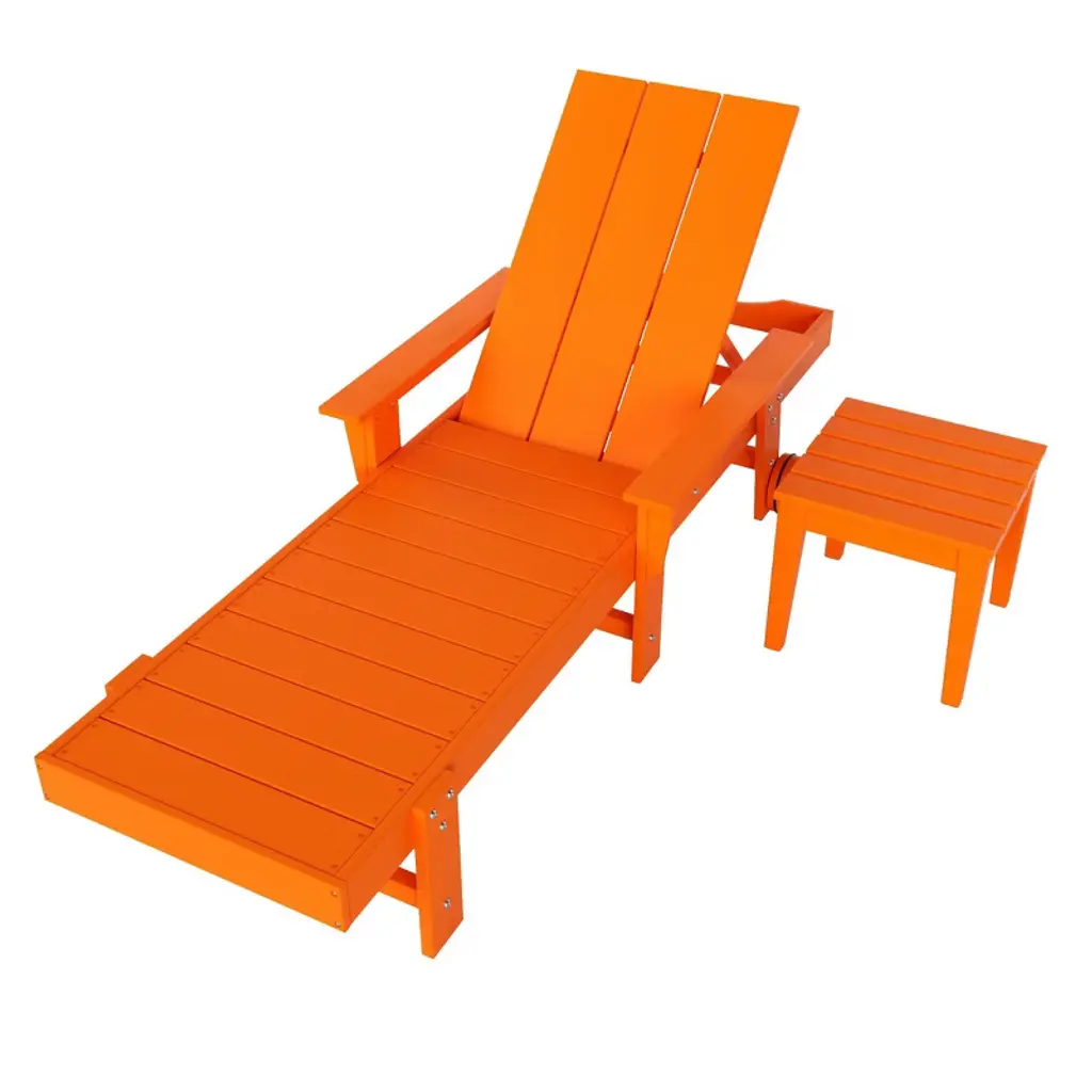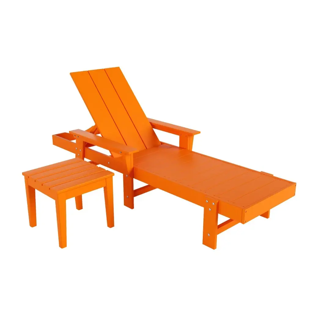 Westintrends Ashore Modern Reclining Chaise Lounge With Side Table 2-piece Set, Orange