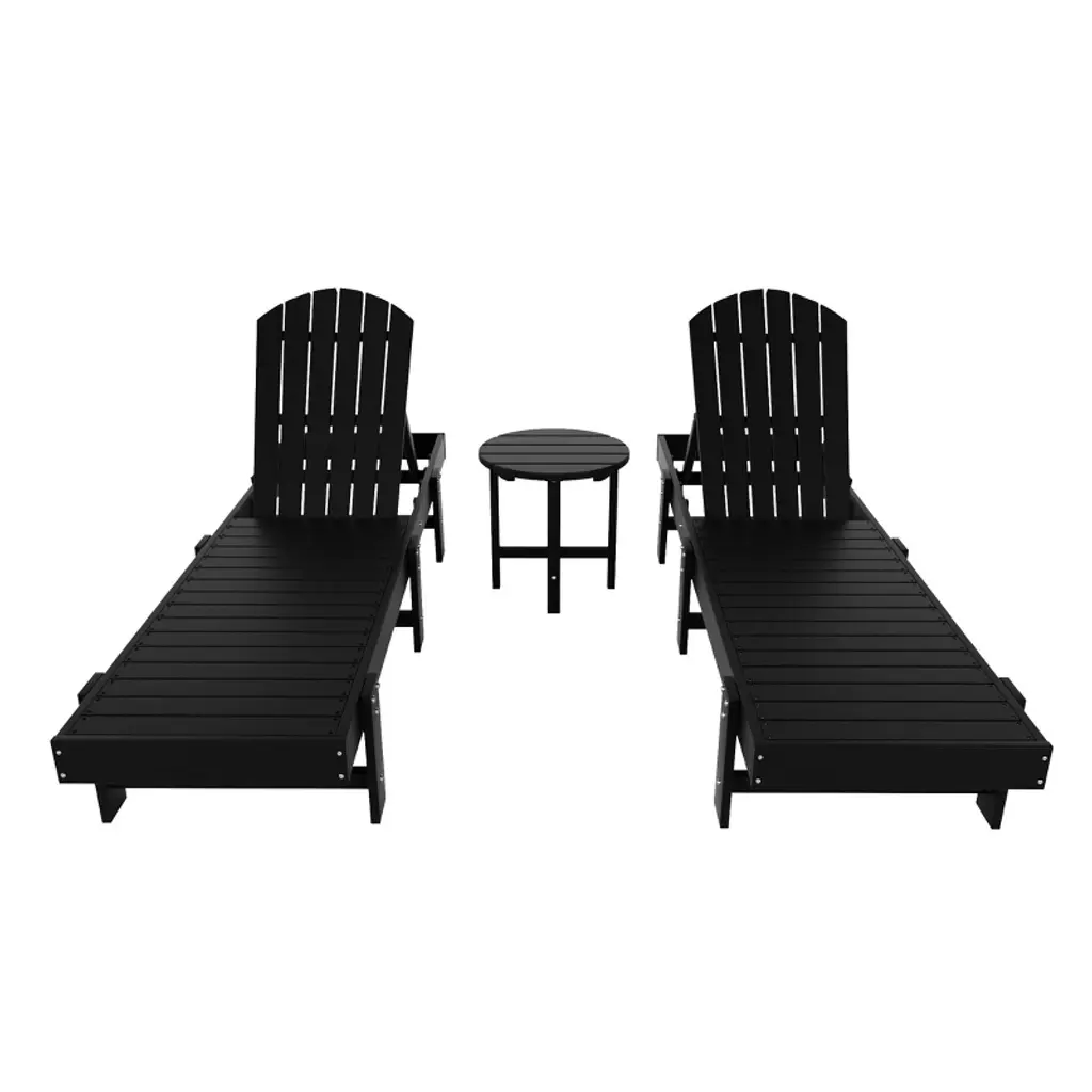 Westintrends Dylan 3 Piece Adirondack Poly Reclining Chaise Lounge, Black