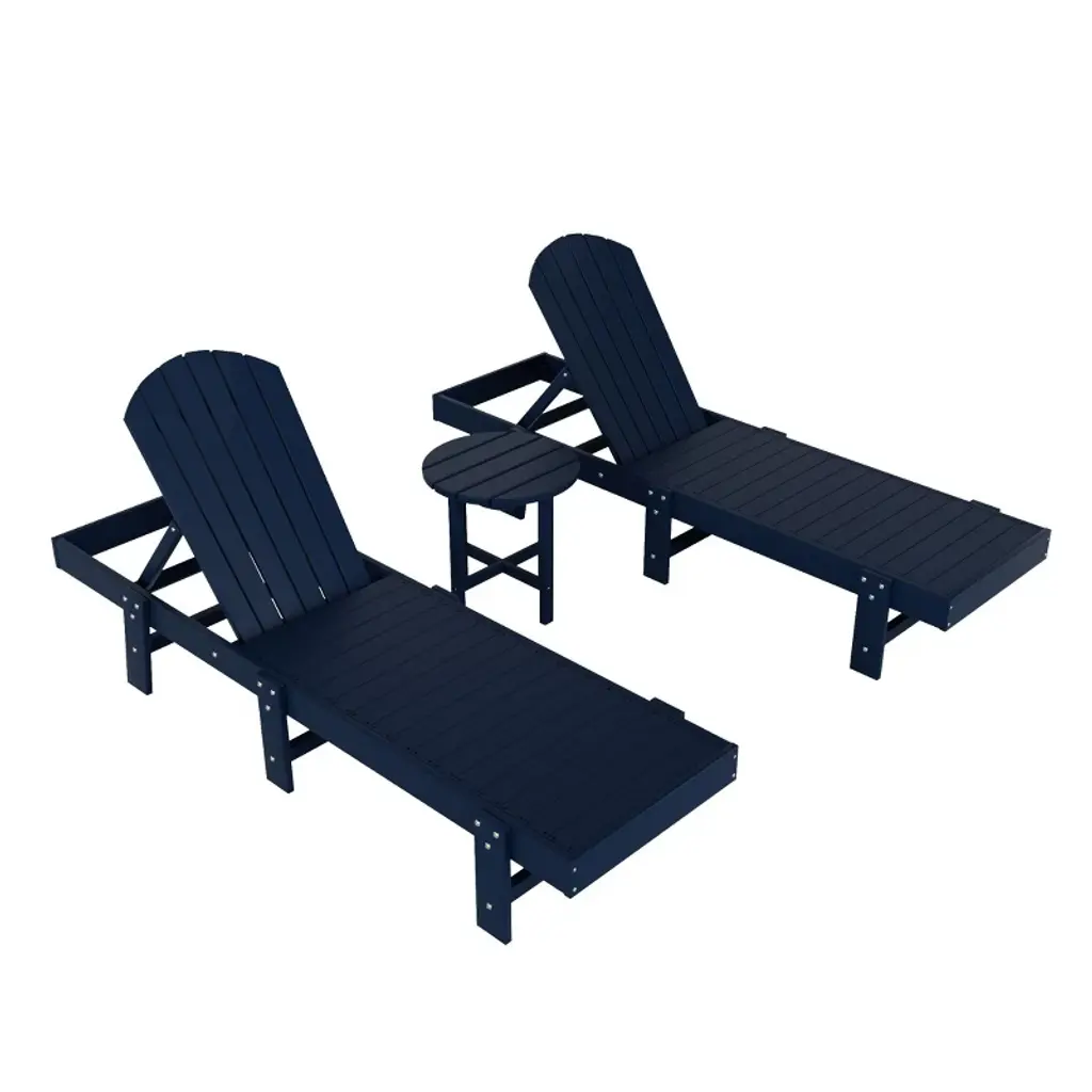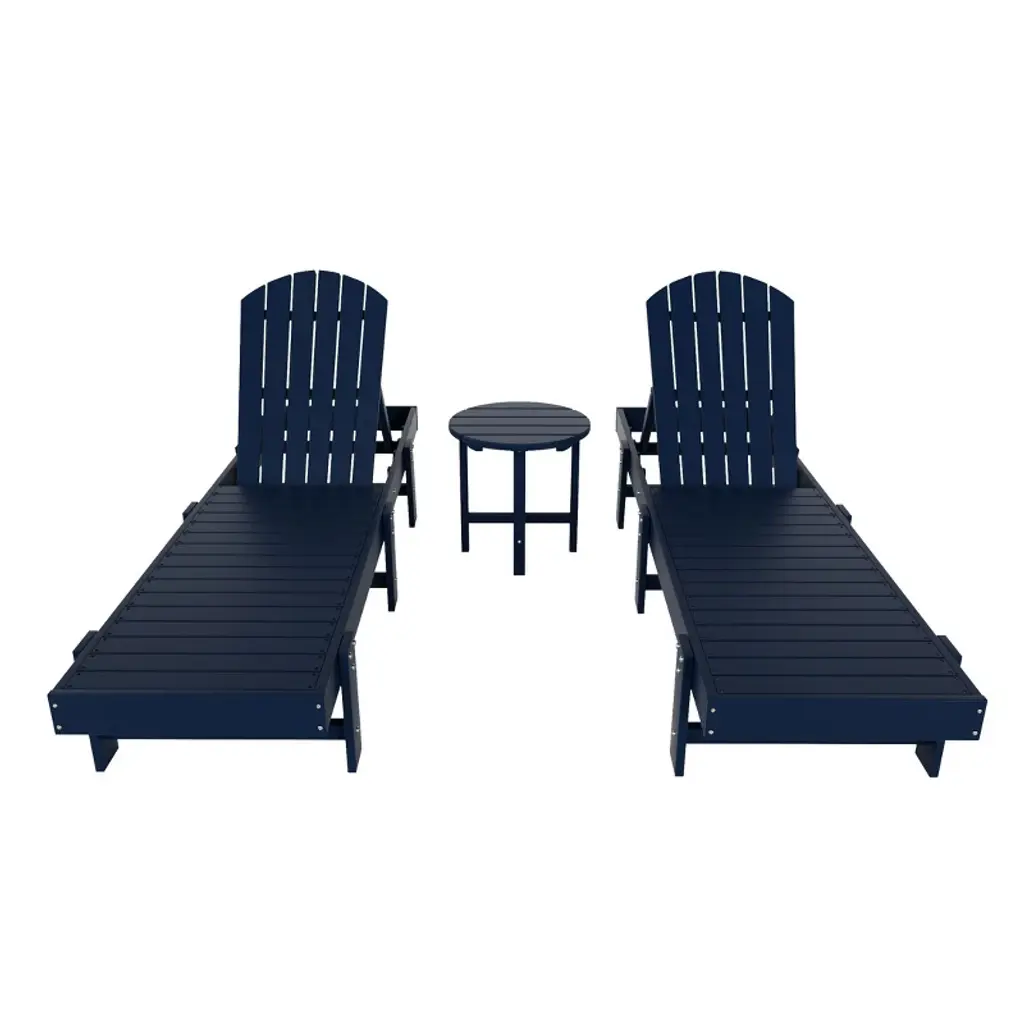 Westintrends Dylan 3 Piece Adirondack Poly Reclining Chaise Lounge, Navy Blue