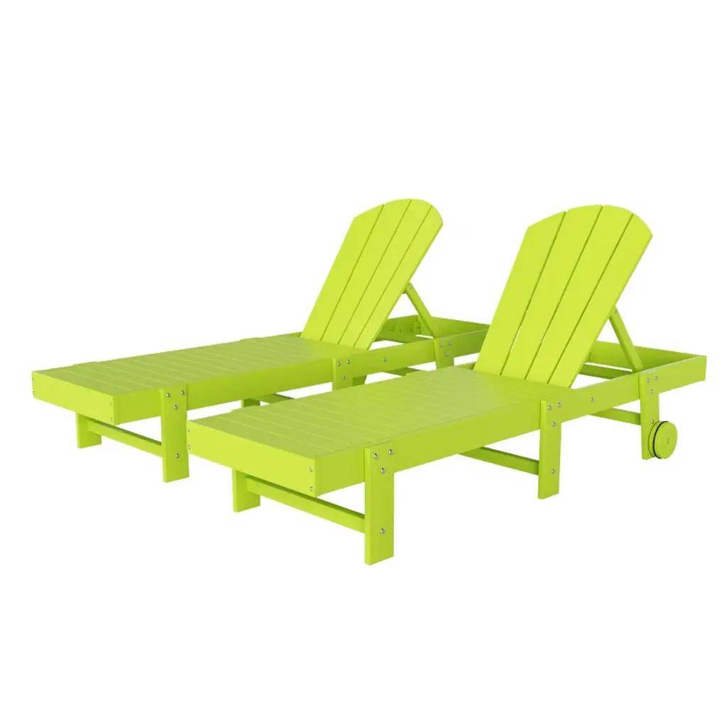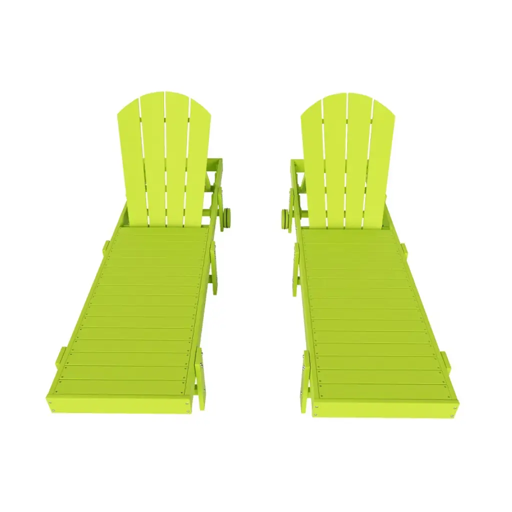Westintrends Malibu Adirondack Poly Reclining Chaise Lounge With Wheels (Set Of 2Pcs), Lime