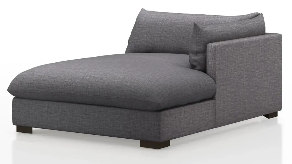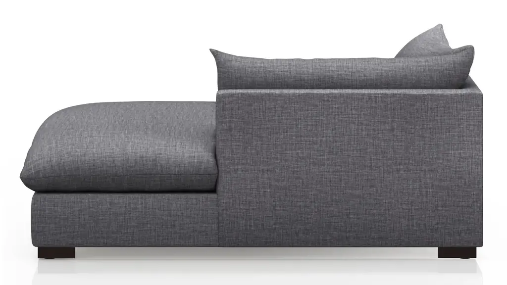 This fashion-forward Westwood Right Arm Facing Chaise mixes elegant fabrics with interesting design elements from stainless steel to exposed hardwoods. Each piece features North American-made hardwood frames, steel suspension and hand craftsmanship for quality and comfort. Beautiful forms and delightful details make for luxurious, high-style seating.