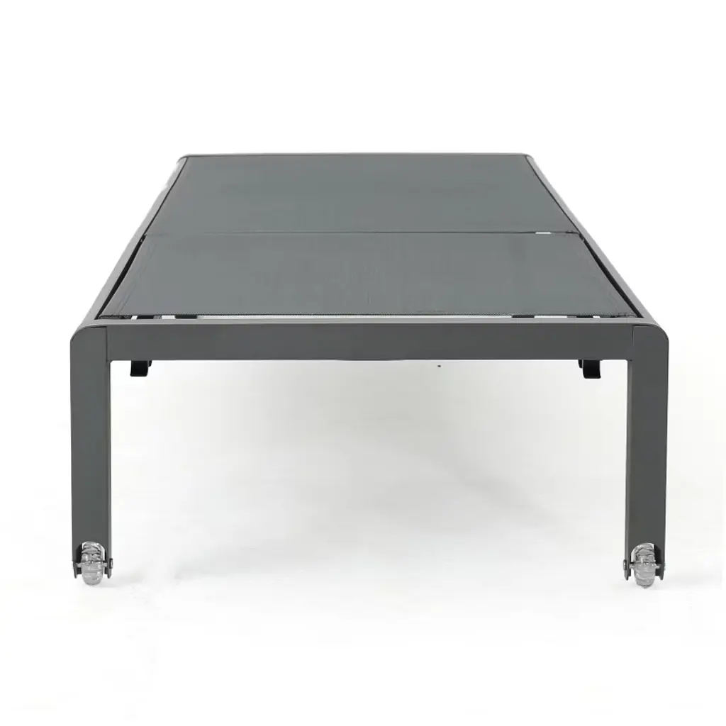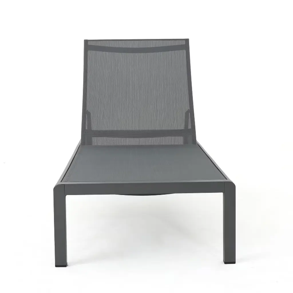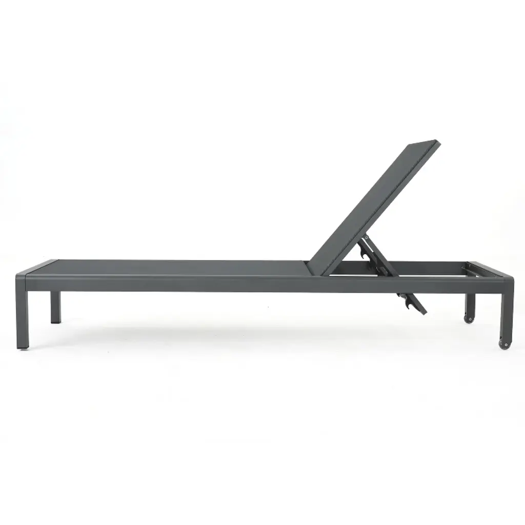 The Minimalist 77.5"L Patio Chaise Lounge combines modern design with ultimate comfort. Crafted from durable aluminum with a sleek gray finish, it features breathable mesh fabric for cool, luxurious relaxation. Equipped with wheels, it' s easy to move and position anywhere¡ªpoolside, garden, terrace, or balcony.The ergonomic angled backrest and spacious seat provide perfect support for lounging in style. Weather-resistant and lightweight, it¡¯s built to last through seasons of sun and rain.Upgrade your outdoor living with this versatile, functional, and elegant chaise lounge. Perfect for chasing sunlight or creating a serene retreat.