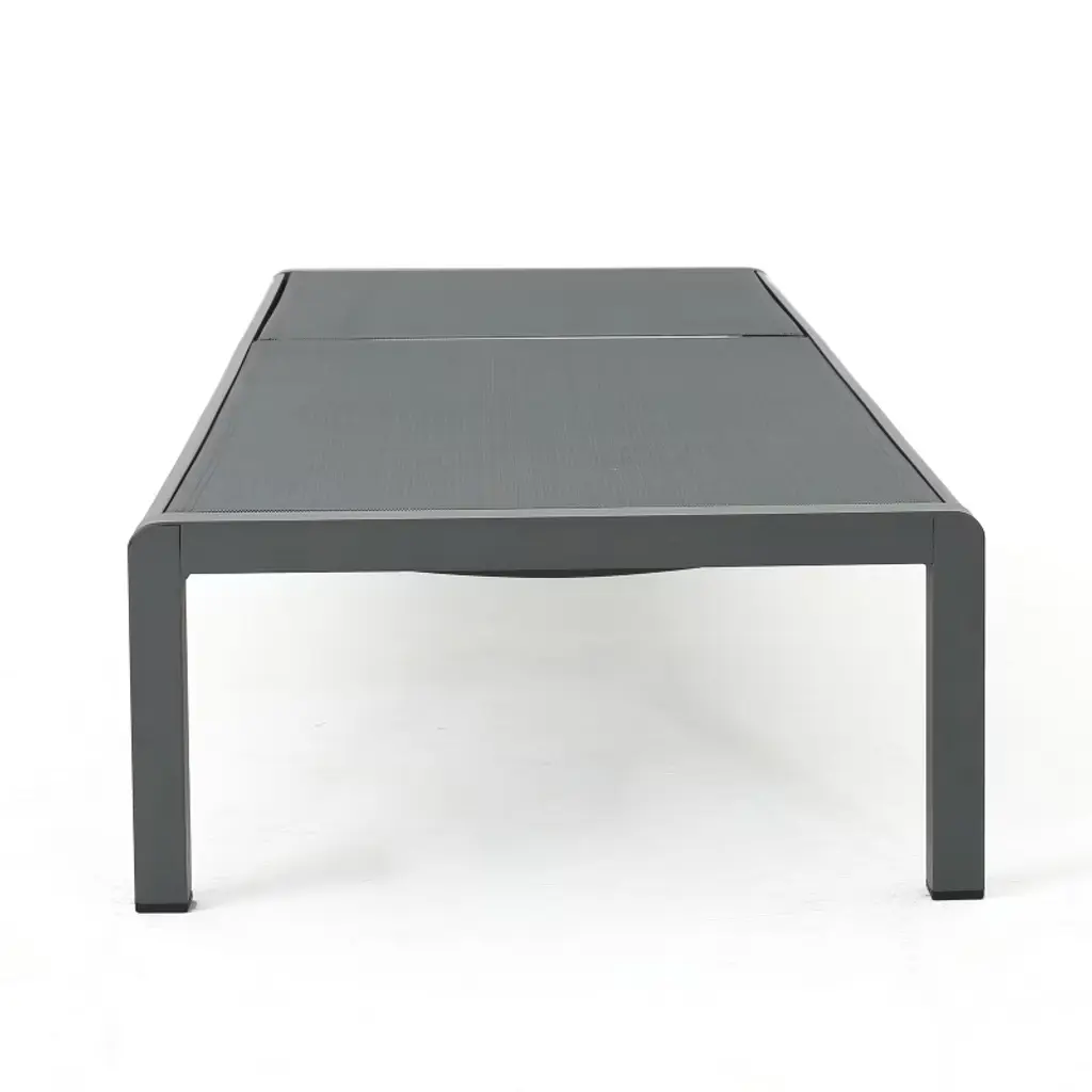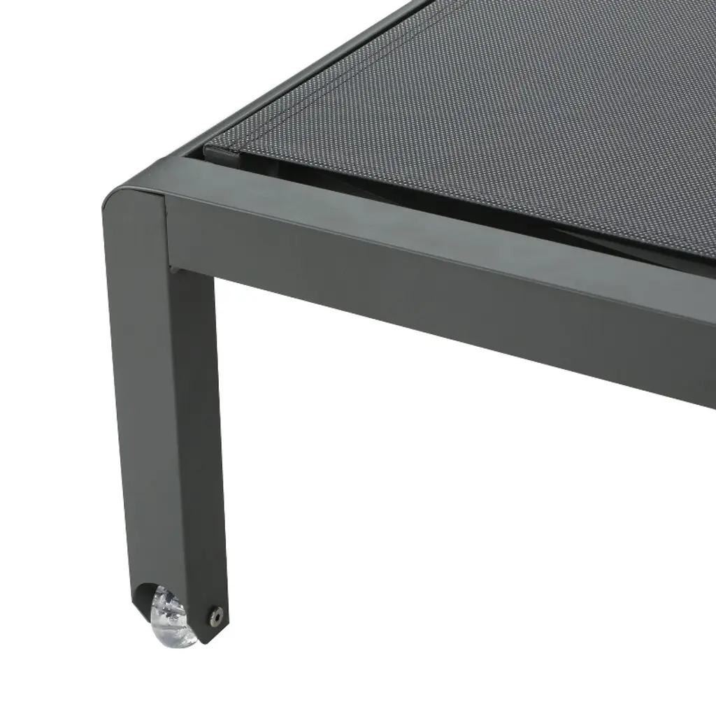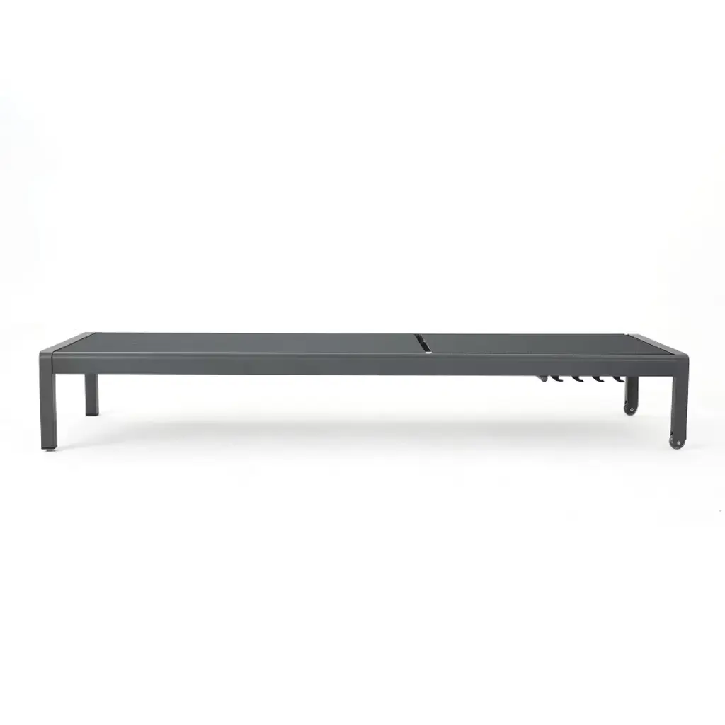 The Minimalist 77.5"L Patio Chaise Lounge combines modern design with ultimate comfort. Crafted from durable aluminum with a sleek gray finish, it features breathable mesh fabric for cool, luxurious relaxation. Equipped with wheels, it' s easy to move and position anywhere¡ªpoolside, garden, terrace, or balcony.The ergonomic angled backrest and spacious seat provide perfect support for lounging in style. Weather-resistant and lightweight, it¡¯s built to last through seasons of sun and rain.Upgrade your outdoor living with this versatile, functional, and elegant chaise lounge. Perfect for chasing sunlight or creating a serene retreat.