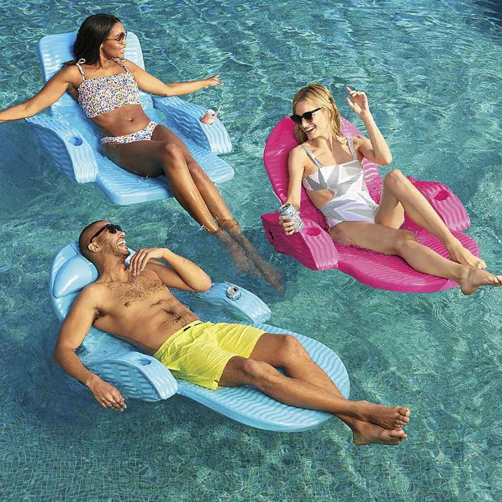 Relax and float the day away on our upgraded, ultra-comfortable – and extra buoyant – pool chaise featuring 25% more foam than previous models. It features 2-inch-thick, closed-cell foam, a built-in headrest, detachable pillow and is adjustable to fully upright, flat and multiple reclining positions. The deep, integrated armrest cupholders keep drinks cool and upright, even while the float is fully reclined. Easily props up, lies flat and adjusts in between; folds for storage Extra-thick vinyl and its glossy vinyl coating protect against fading and chemicals Thick layers of ultra-buoyant, closed-cell foam Internal rust-resistant steel frame covered with an additional anti-rust coating Rippled surface for added comfort Detachable pillow Deep, integrated cupholders remain upright Easily fold for storageNOTE: Some minor surface imperfections may appear as a result of the triple-dip coating process, however they do not impact performance. Made in USA A Frontgate exclusive. At Frontgate, our primary focus is quality. We guarantee that every product we sell will stand up to the supreme test – our customers' satisfaction. To learn more about our policies, visit our Shipping & Processing, Returns & Exchanges and Warranty & Price Guarantee pages.