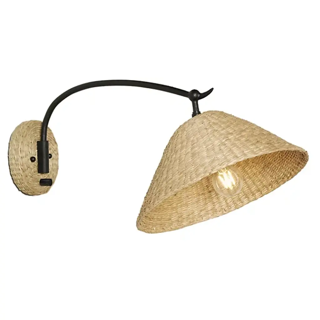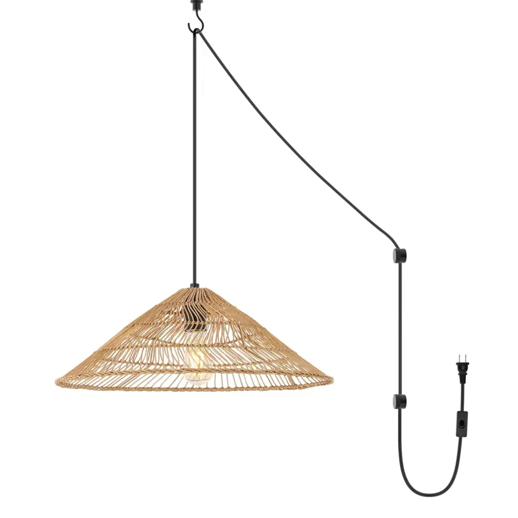 Lantern wall pendant light fixture plug in cord embodies the modern bohemian style. It is hand-woven with high-quality bamboo and rattan. It is equipped with 2 bases, switches and plug wires.