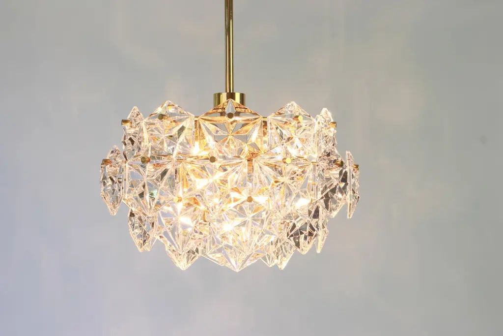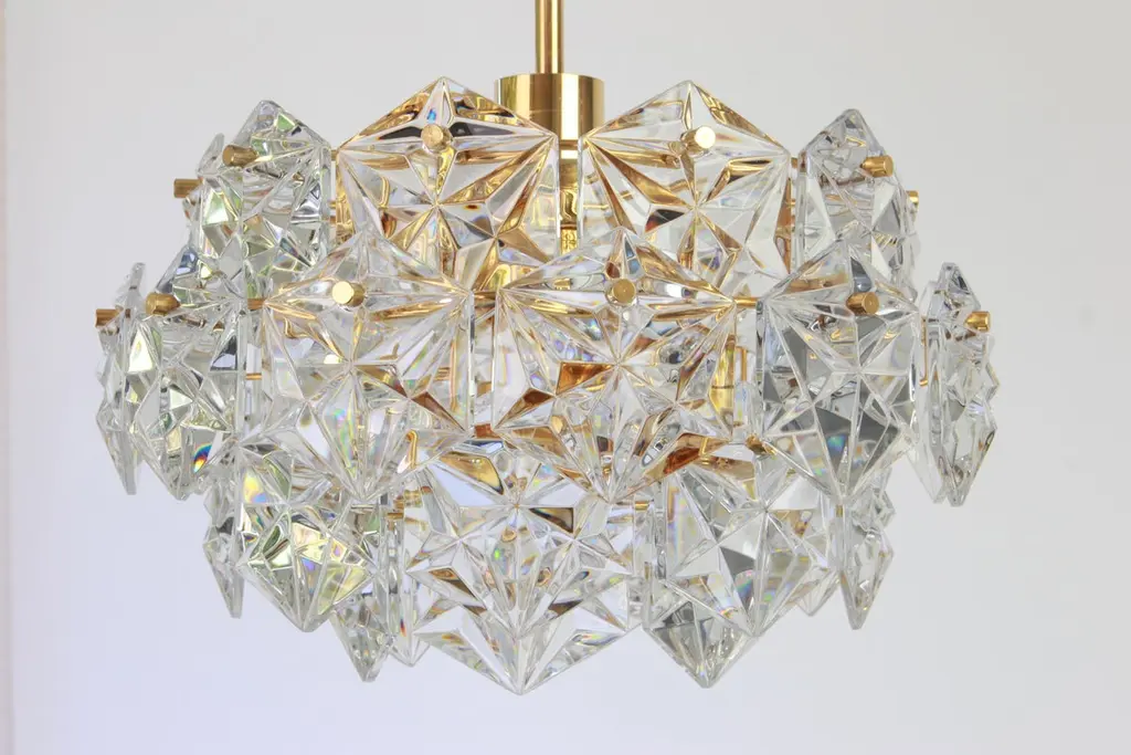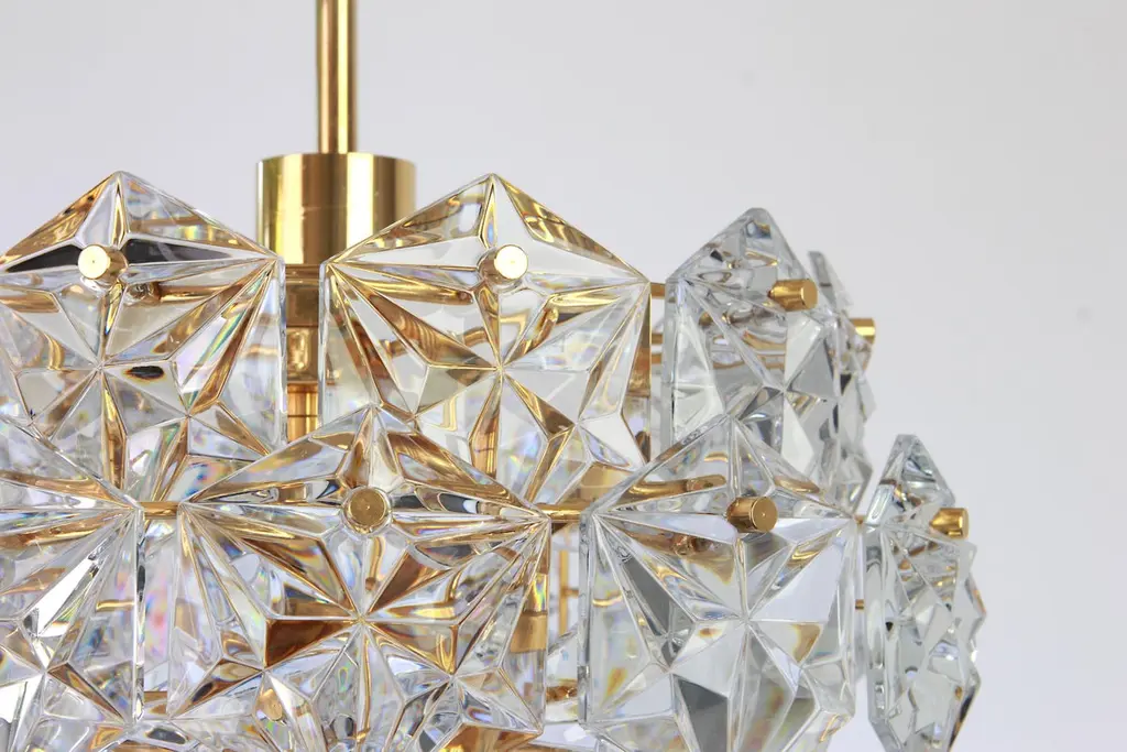 1 Of 2 Stunning Chandelier, Brass And Crystal Glass By Kinkeldey, Germany, 1970