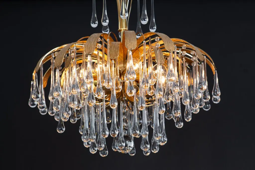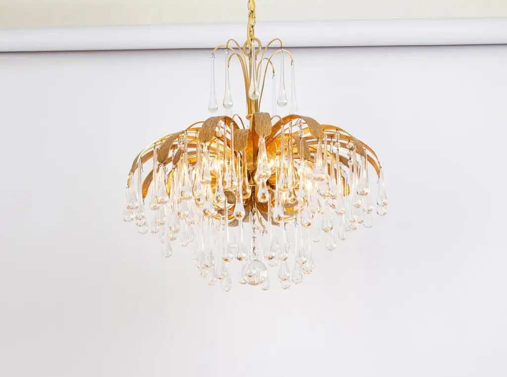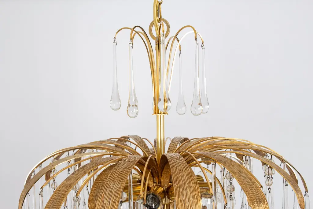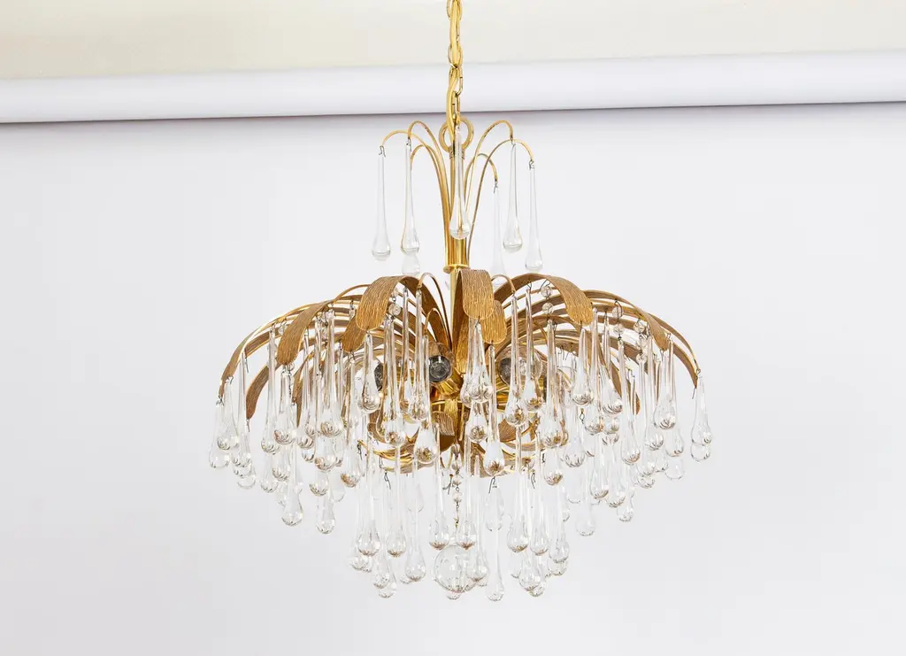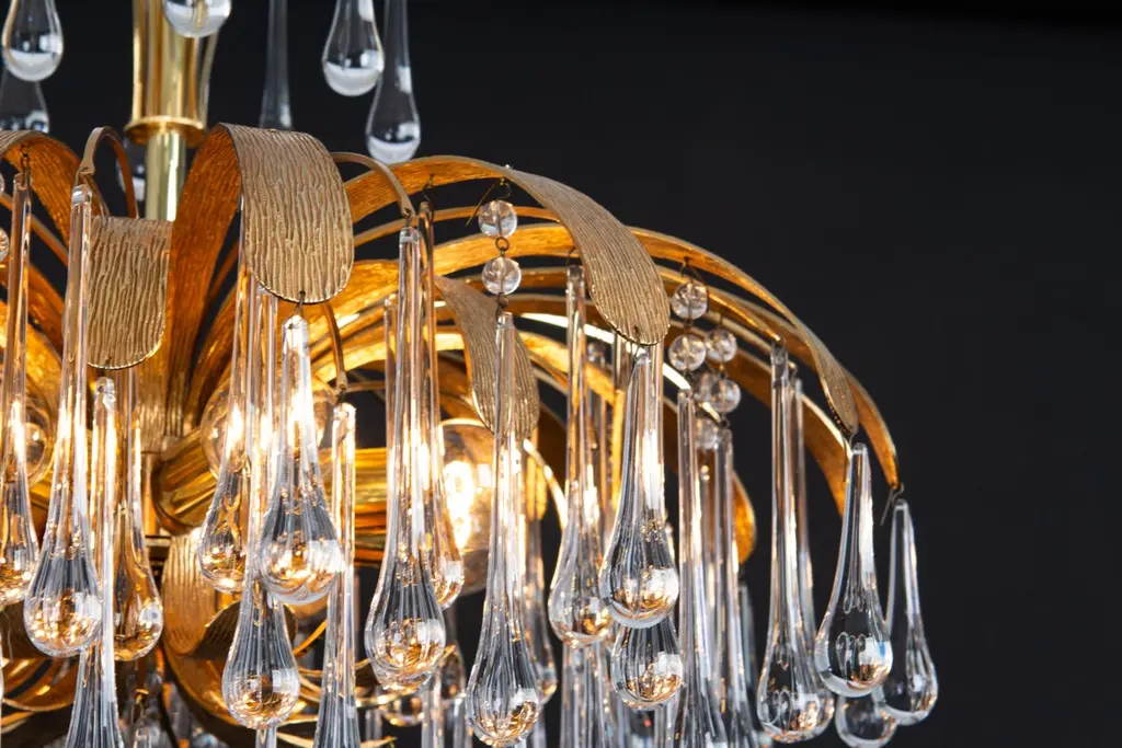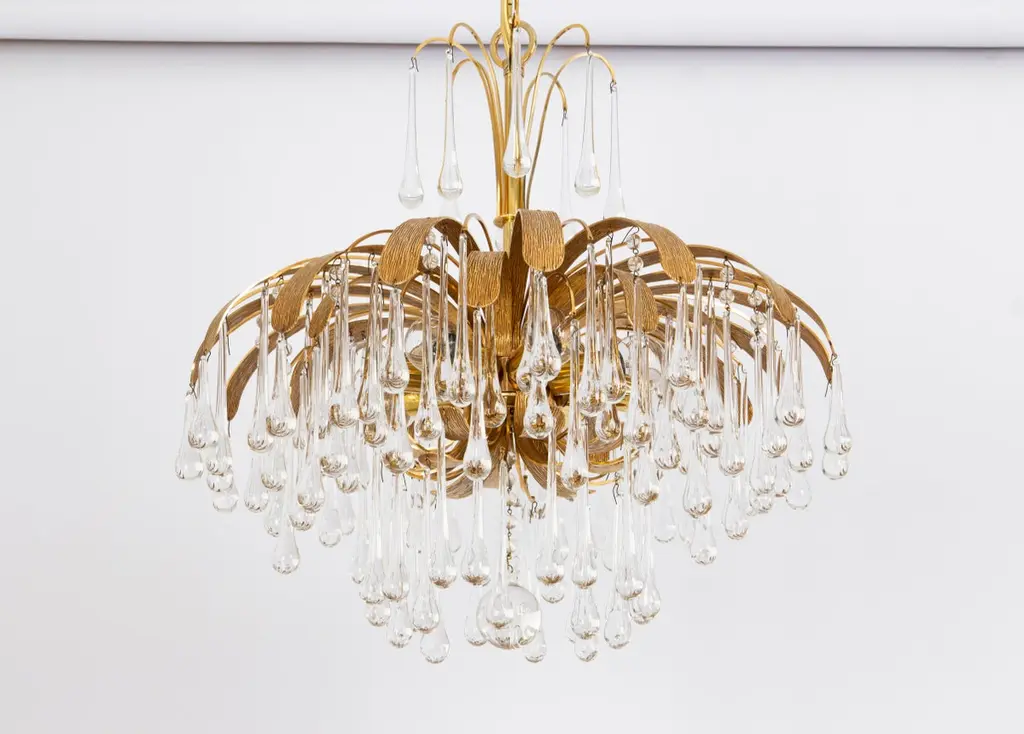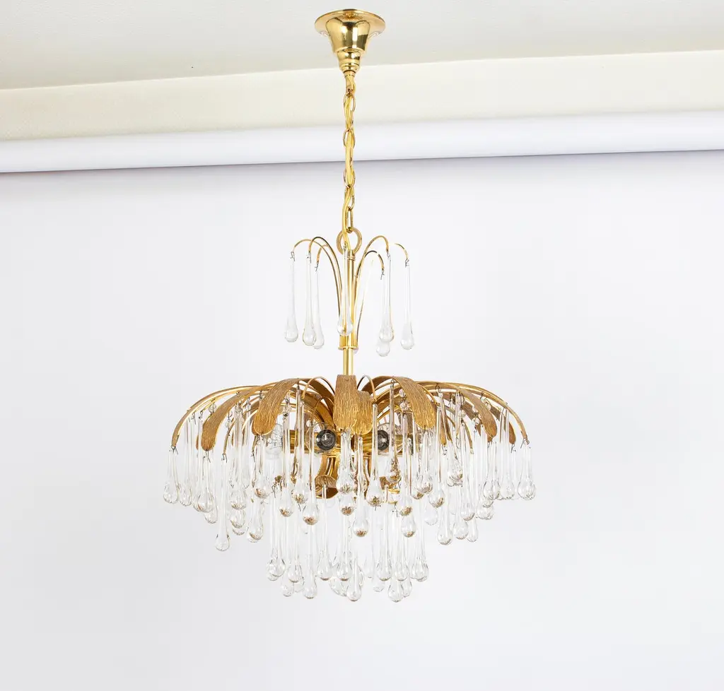 1 Of 3 Gilt Brass Teardrop Chandelier By Palwa, Sciolari Design, Germany, 1970s