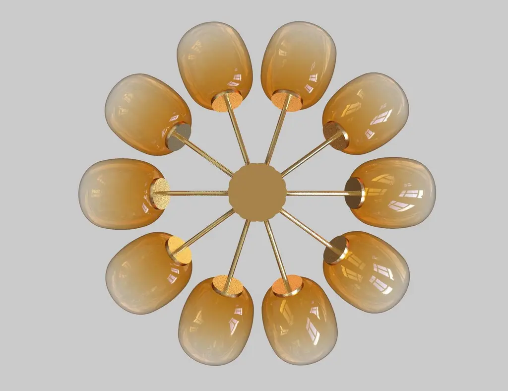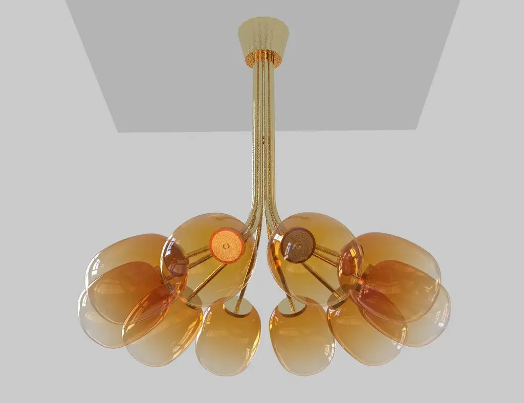 10 Module Branched Candy Chandelier With Hand-Blown Glass And Brass
