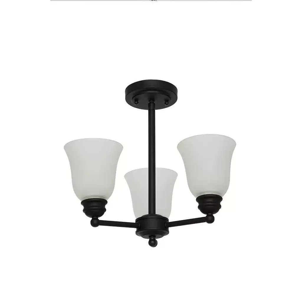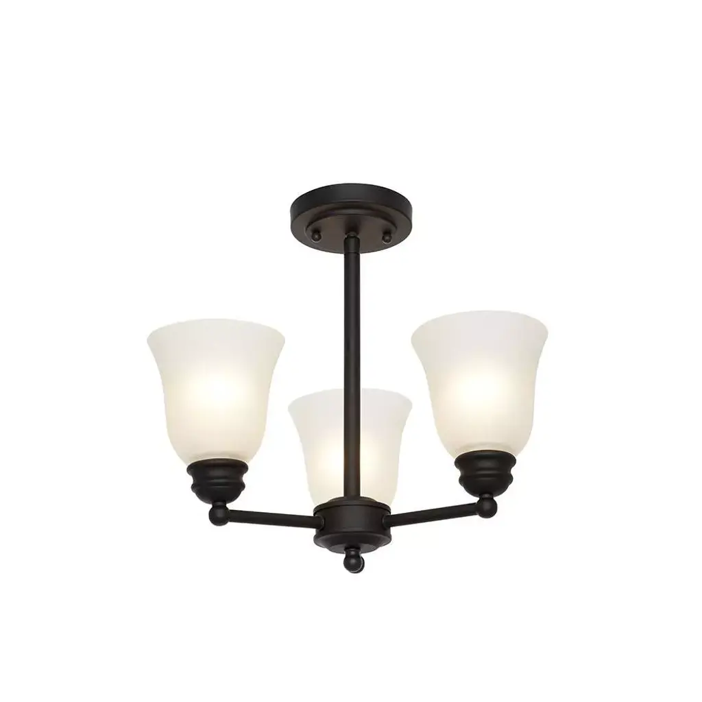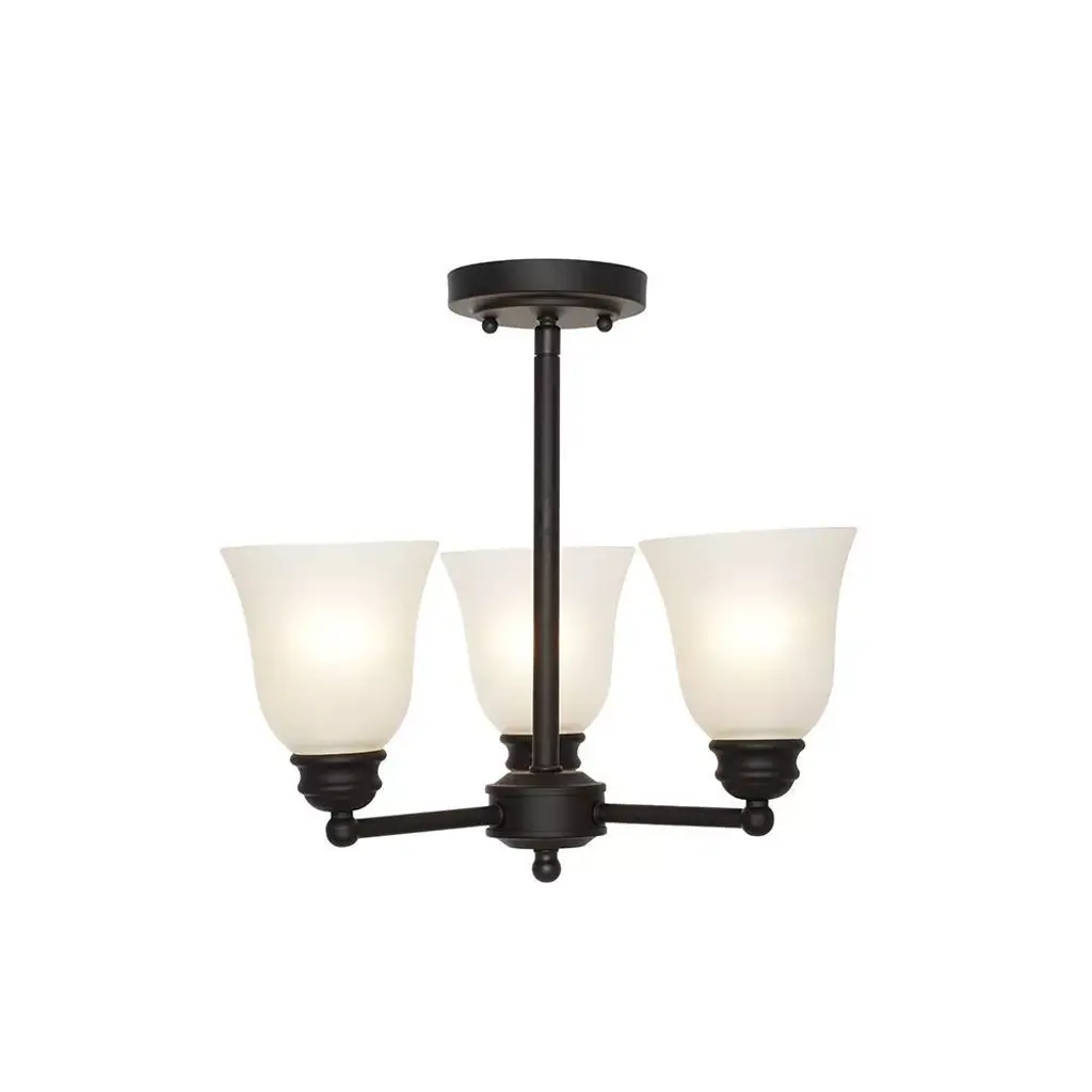 For over 30 years, Catalina Lighting has been creating stylish, well-crafted lighting solutions that inspire. Designed for modern living, our collections blend contemporary aesthetics with everyday functionality, making it easy to refresh your space with effortless style. A modern take on classic design, this traditional 3-light semi-flushmount offers exceptional beauty in any room it’s placed. Perfect for an entryway, eat-in kitchen, or anywhere an ambient glow is needed, this lamp offers elegance with simplistic style. With bold, deep bronze construction, offset by the addition of three frosted white glass cylinder shades, this light fixture will look right at home in just about any breakfast nook, dining area, hall, or bedroom.