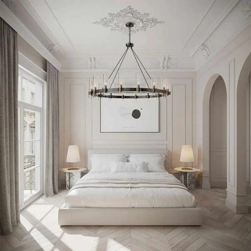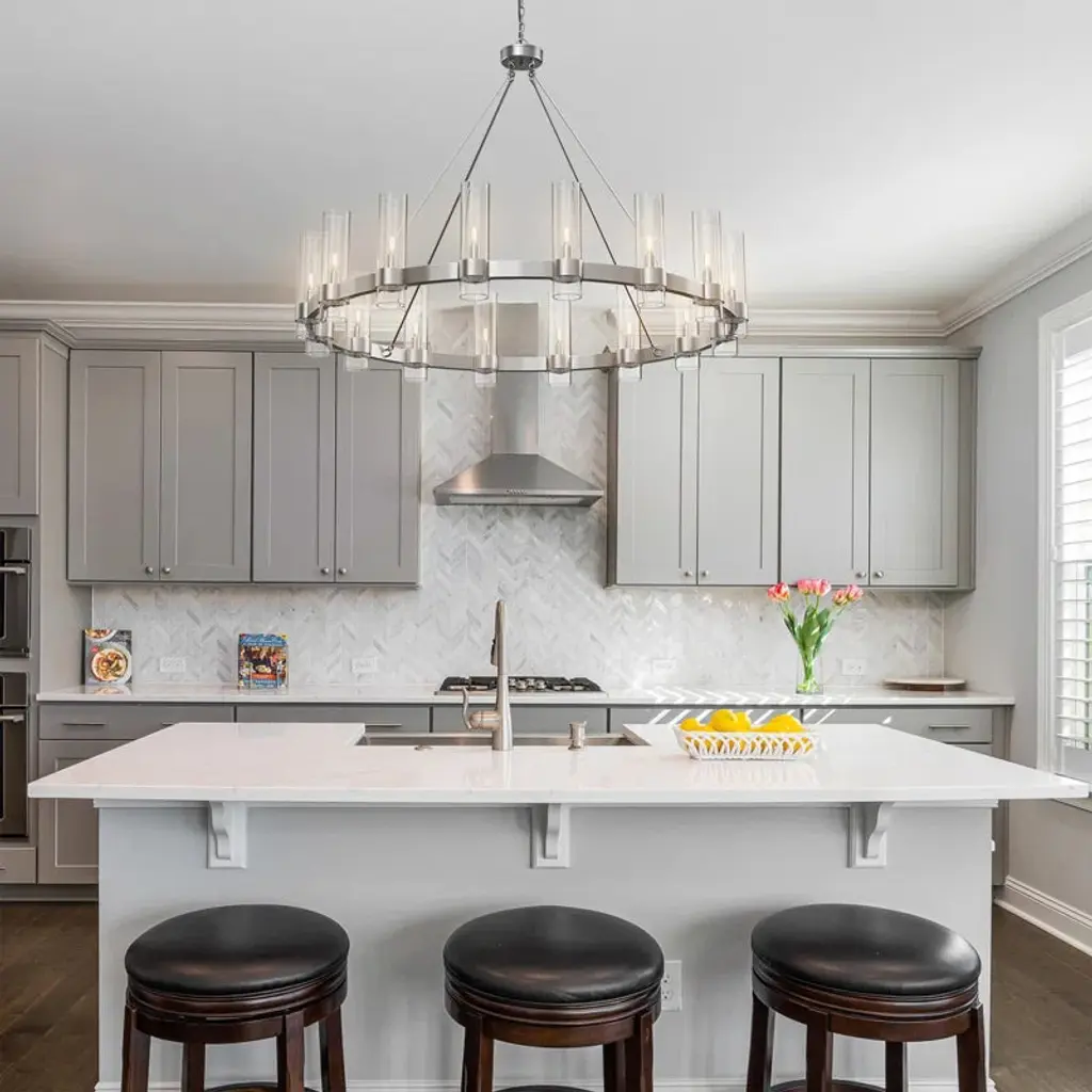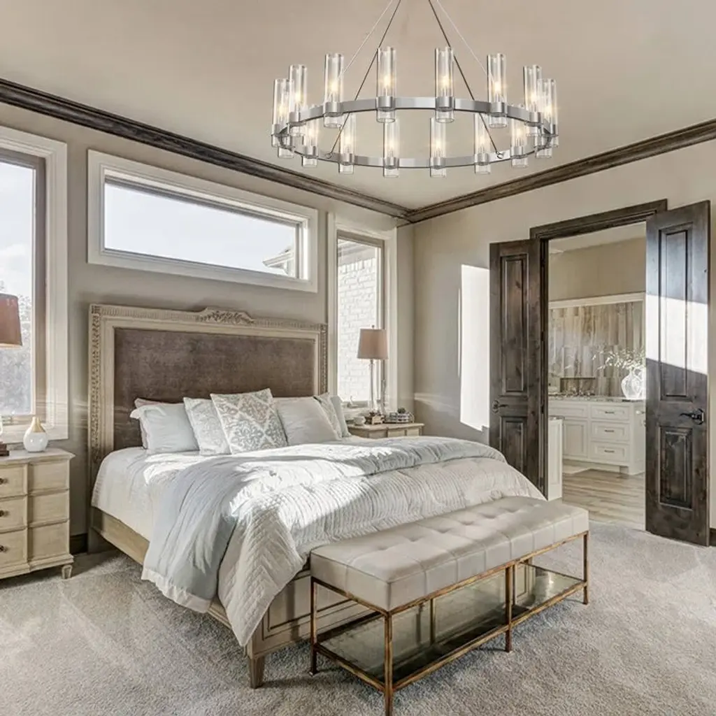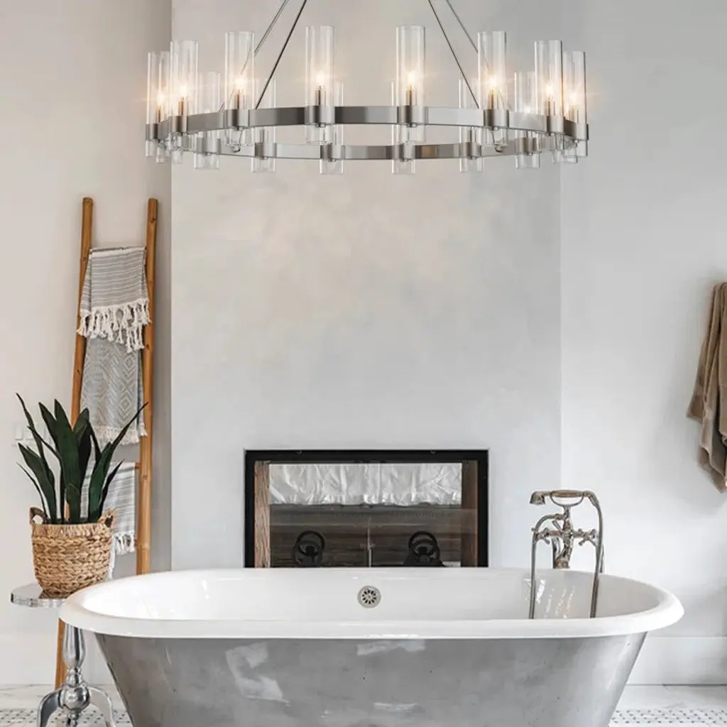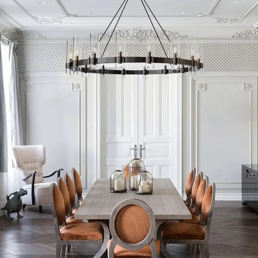 Our this classic and elegant finishes wagon wheel chandelier ( with clear glass shade ) is carefully designed to make it blend into the home environment by professional designers. Every part of the lamp body is created by the precise cutting of machinery and the ingenuity of human craftsmanship.