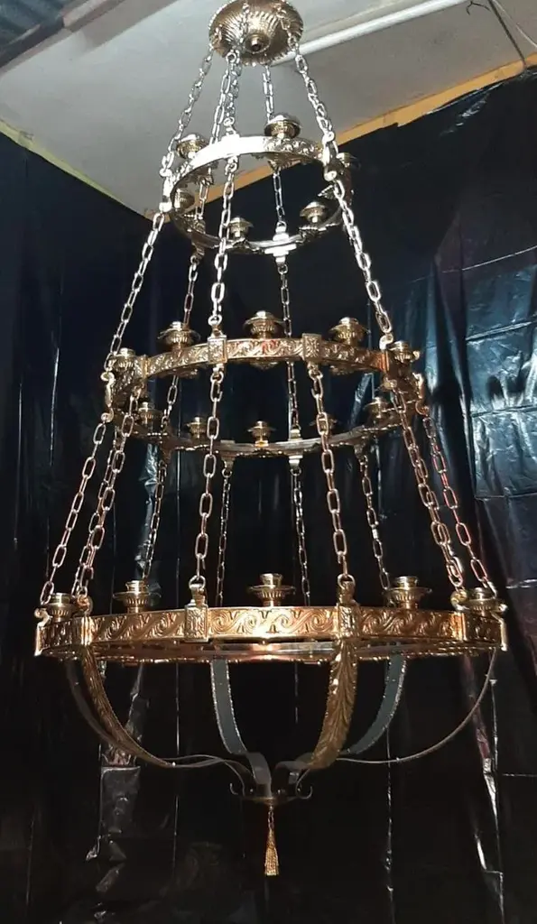 A circa 1900’s Caldwell gilt bronze 30 lights chandelier with neoclassical design