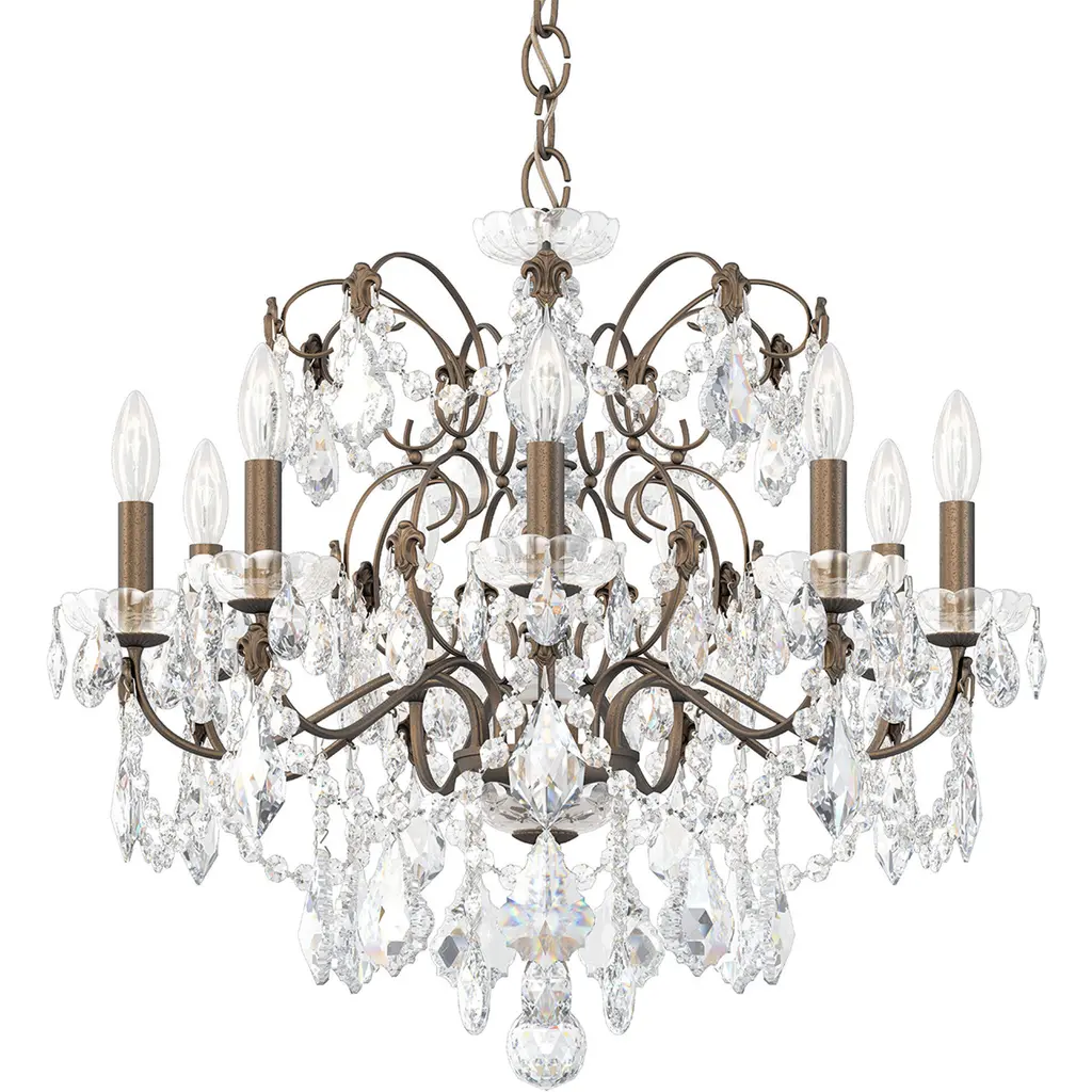 19th C. Rococo Iron & Crystal Round Chandelier 33"