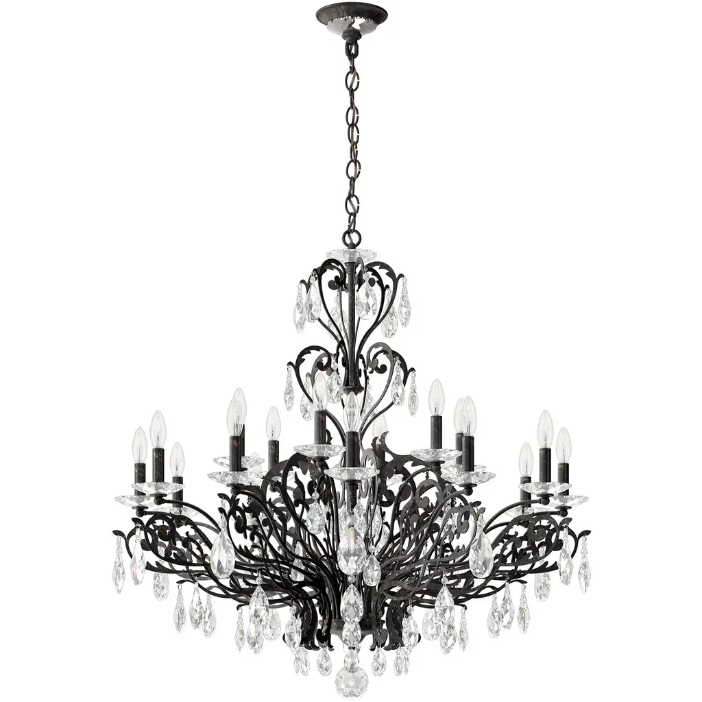 19th C. Rococo Iron & Crystal Round Chandelier 60"