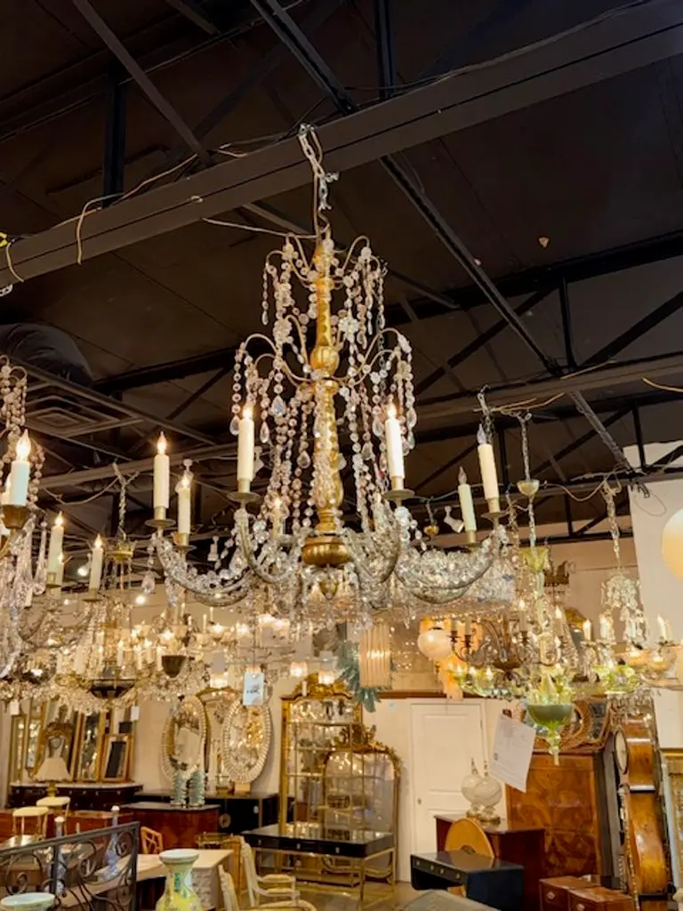 19th Century Giltwood And Crystal Chandeliers From Genoa