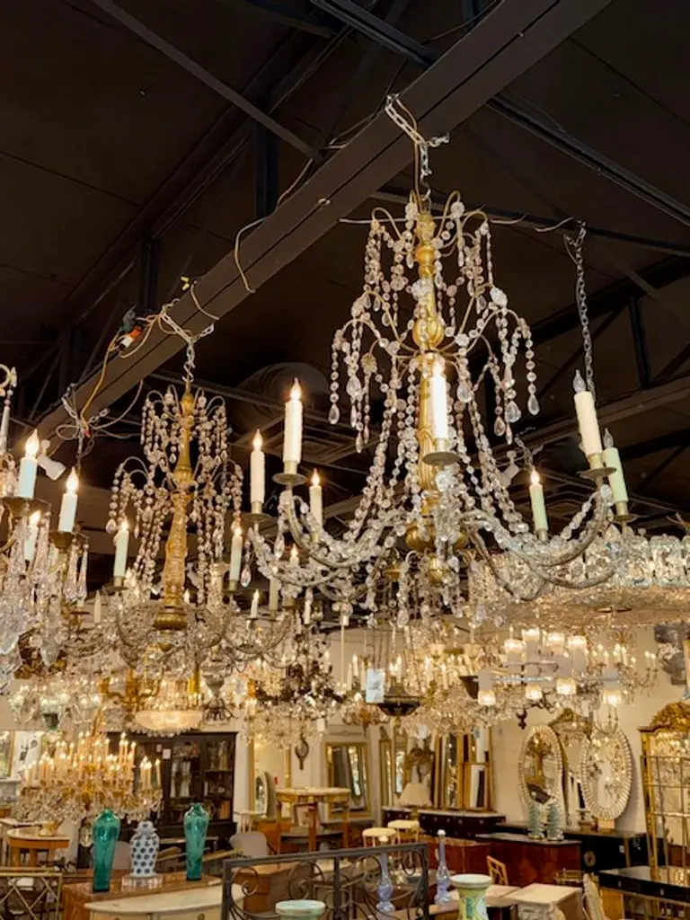 The 19th Century Giltwood and Crystal Chandeliers from Genoa are exquisite lighting fixtures that exude elegance and luxury. Crafted with a combination of giltwood and crystal materials, these chandeliers showcase a stunning design typical of the era they originate from. Perfect for adding a touch of historical charm and glamour to any interior decor setting. These chandeliers from Genoa are a true testament to the craftsmanship of the 19th century. Note: 2 available, sold separately Circa 1870 44h x 36