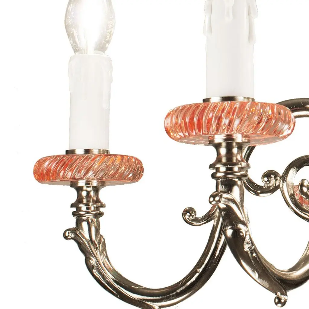 21st Century, 6-Lights Chandelier In Pink And Green Crystal And Bronze