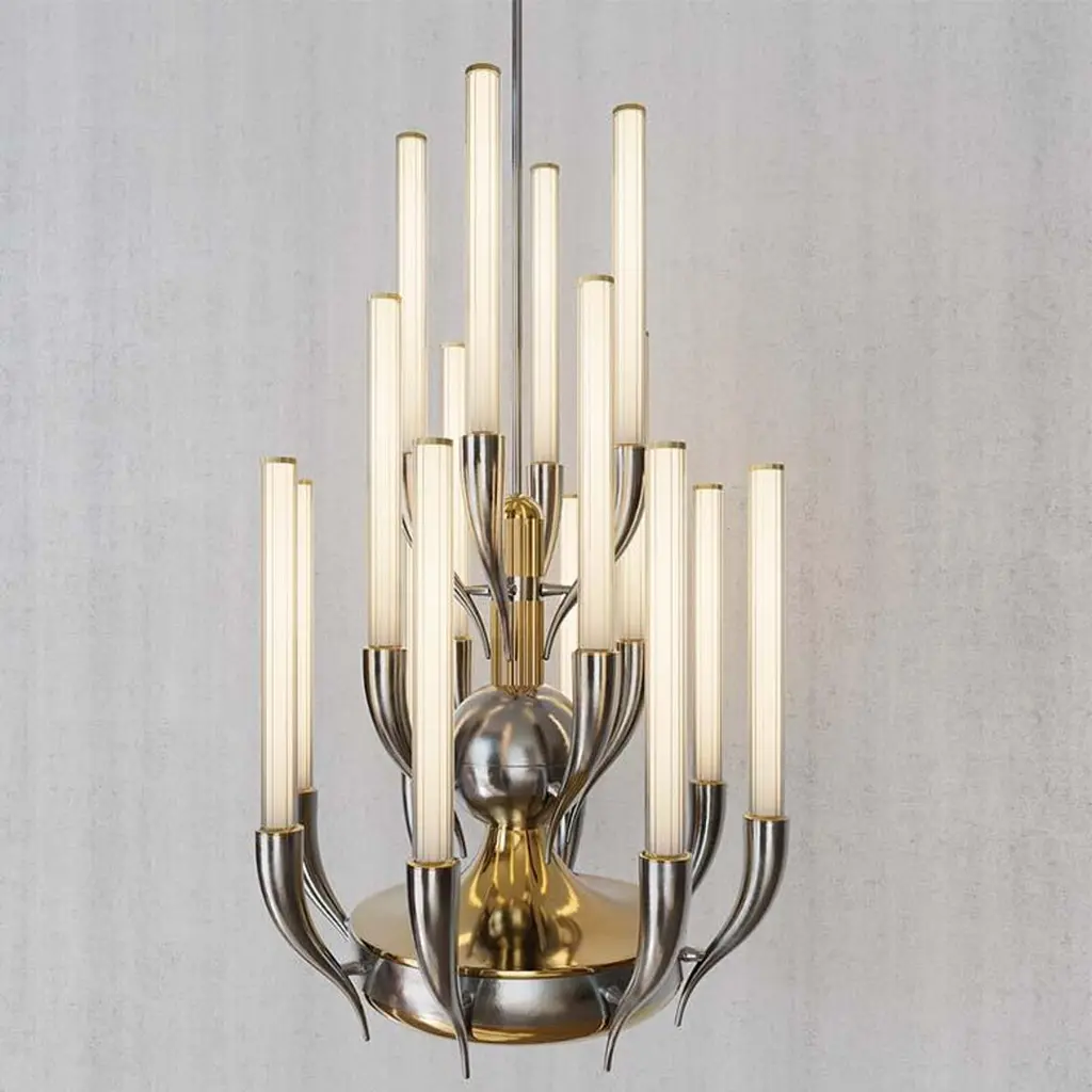 21st-Century, Glass And Brass 16-Light Chandelier With Horn