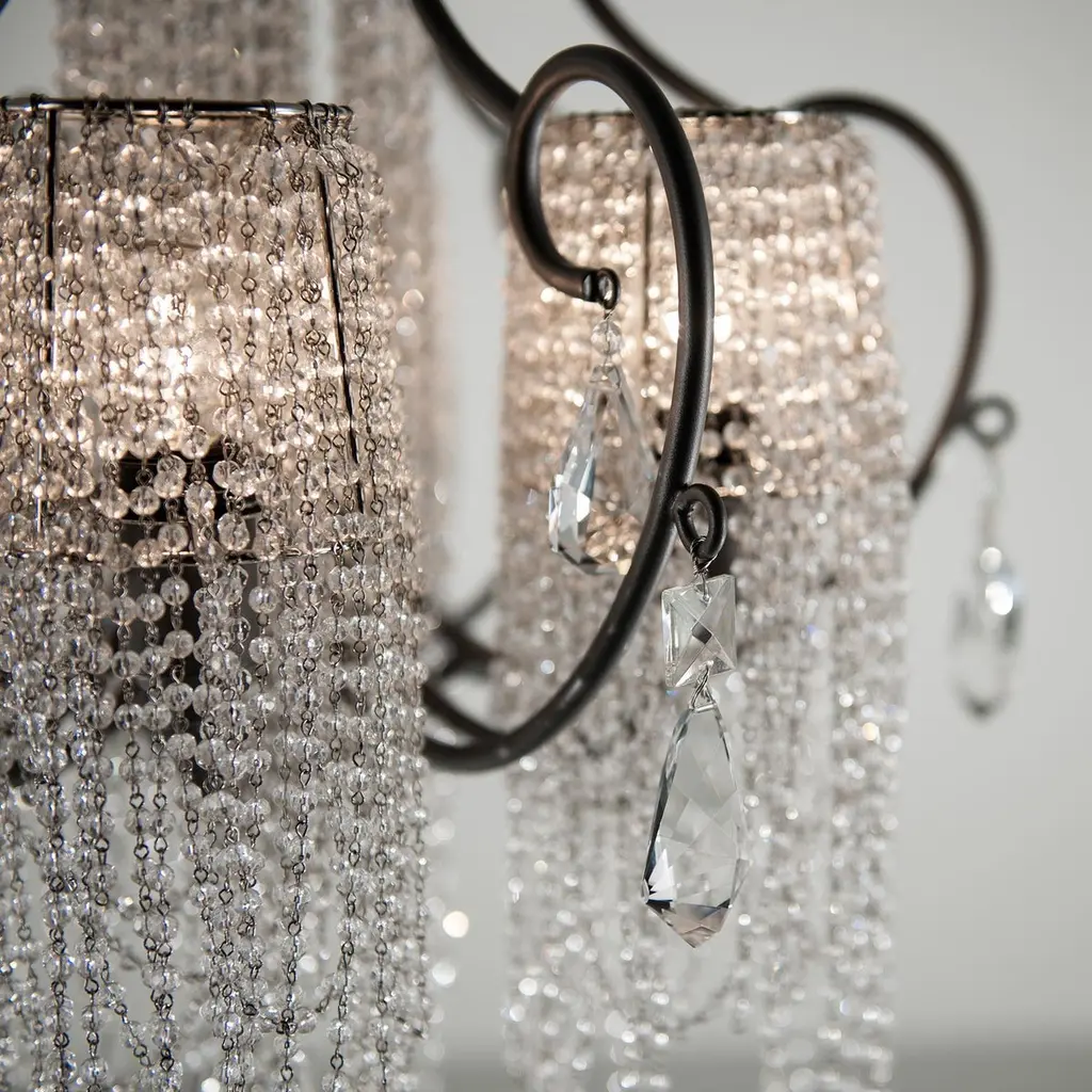 Burlesque’s sister in style, the Ontherocks lamps are both strong and romantic. The two models share between them that huge amount of crystals that, in a Cascade fashion, cover almost entirely the structure, leaving only a glimpse of it to be seen. Kind of see-through. Here, though, the strings of crystals are exclusively transparent and enriched by irregular elements of different shapes – prisms, octagons, multifaceted spheres. A coup de theatre of great effect.