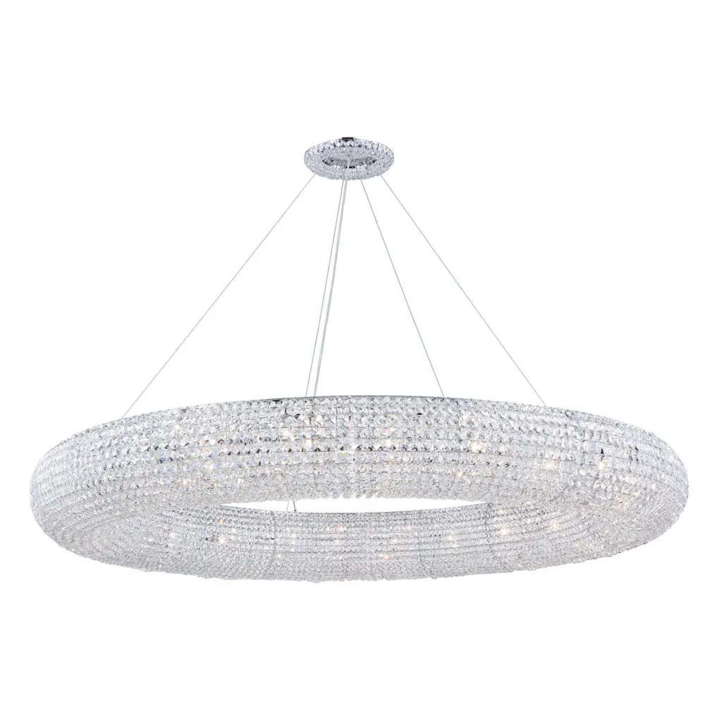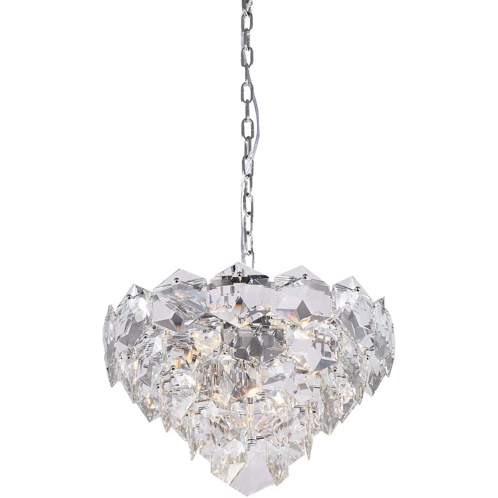 It was back in 1958 when this impressive chandelier made its debut at the Brussels Expo, standing out in the middle of the Italian pavilion. Since then, it has been made available in two sizes, 1 or 2 meters. Both versions feature a sphere composed of prisms with 12 faces, for a unique sparkling effect.Additional information:Material: GlassColour: CrystalLight Source: 20 x max 12W LED E27Finishes: Chrome metalDimensions: Ø 100 x H 100 cmAvailable in other size option: Large.