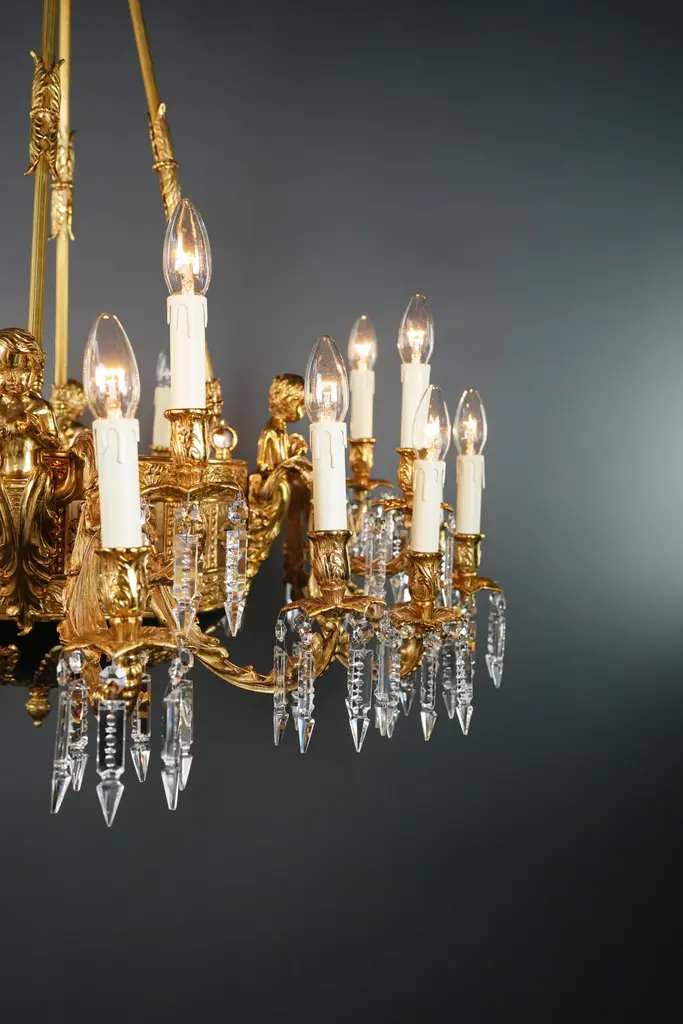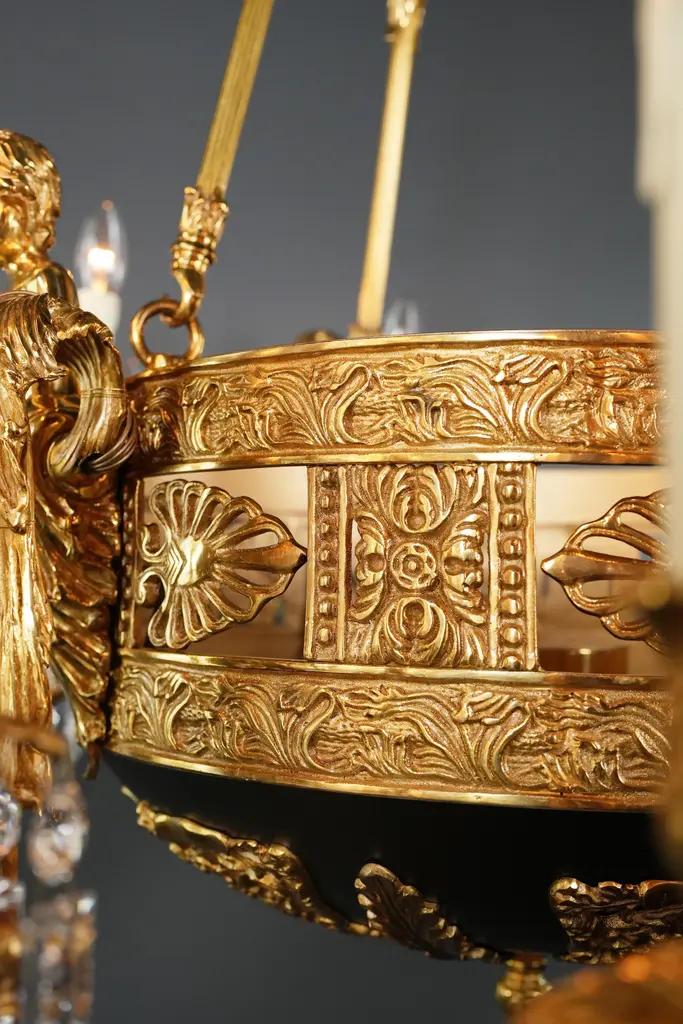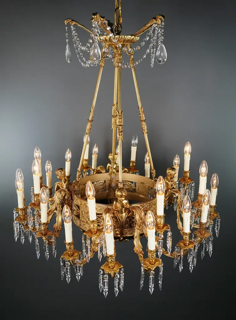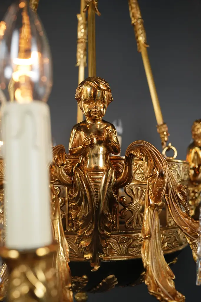 21st Century Putto Brass Empire Chandelier Lamp In Antique Gold