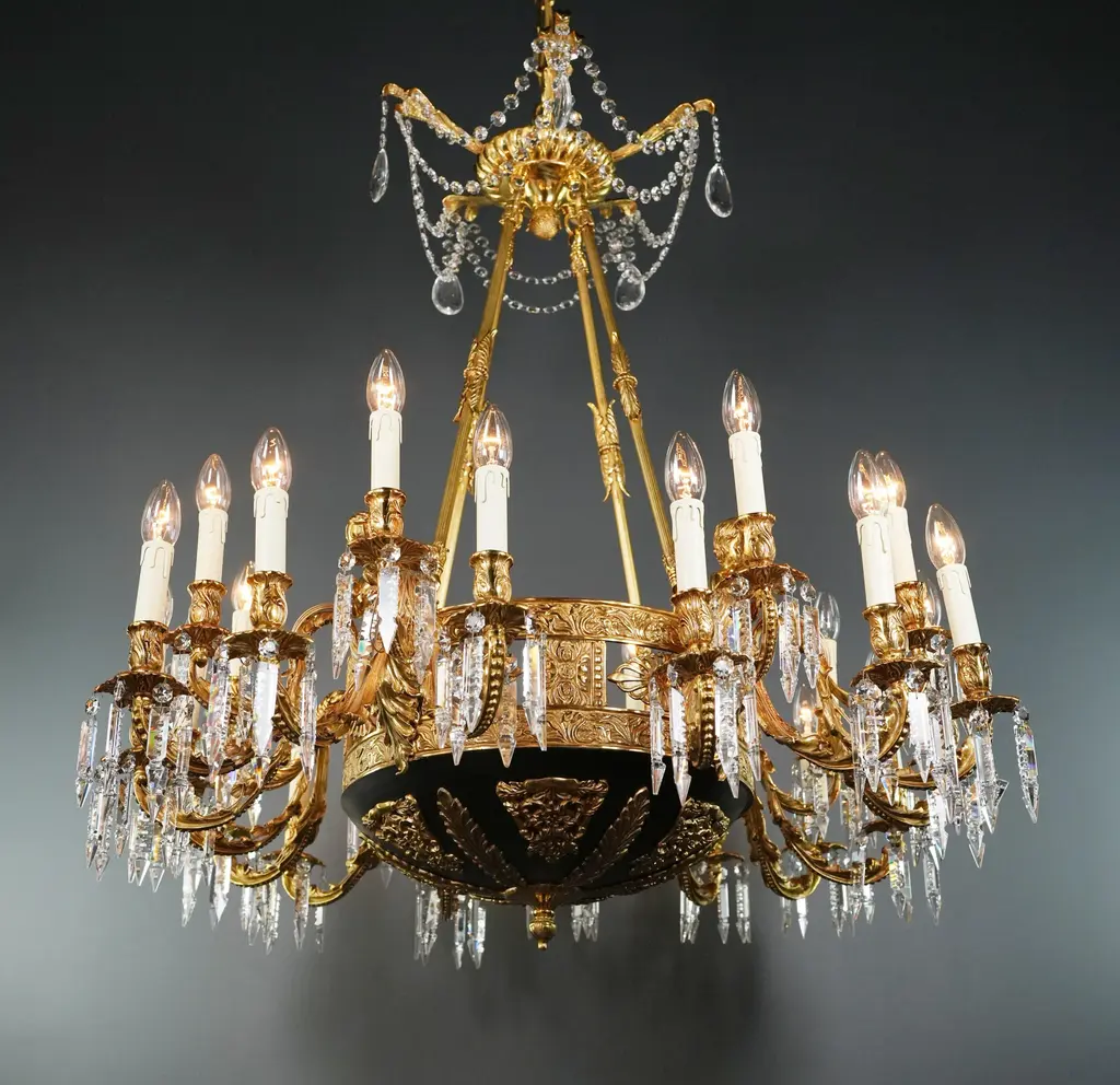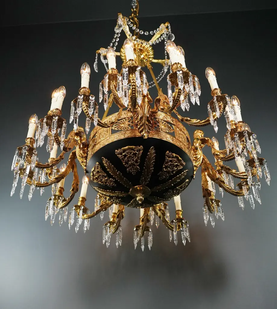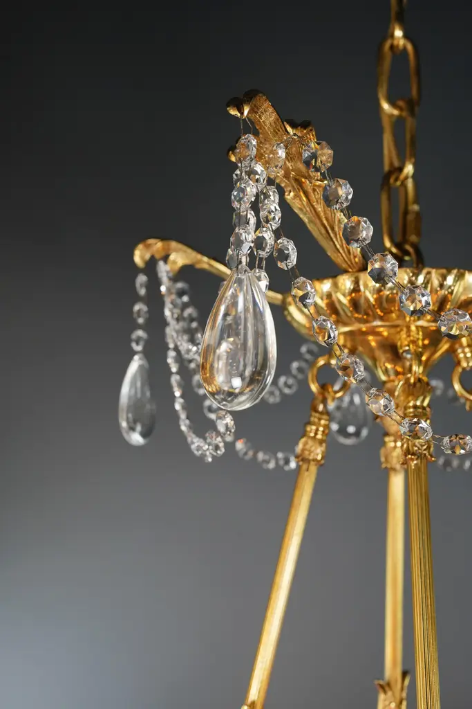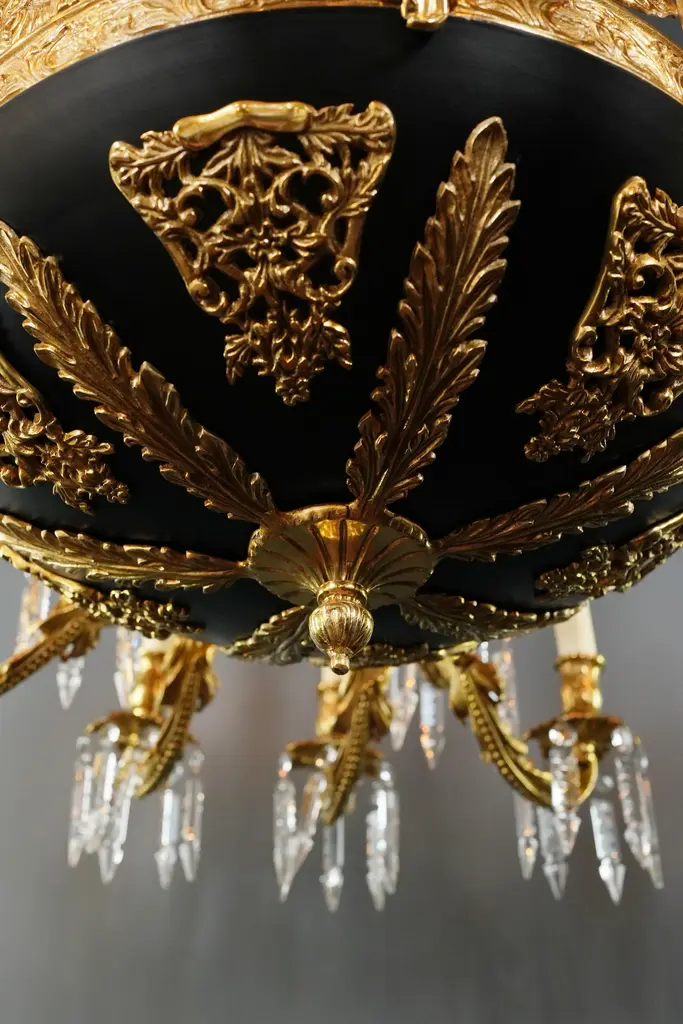 21st Century Putto Brass Empire Chandelier Lamp In Antique Gold