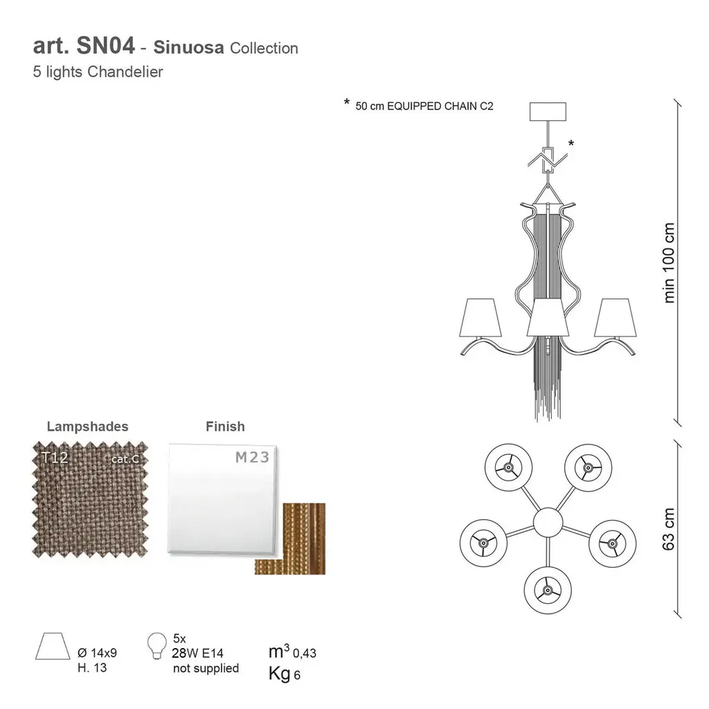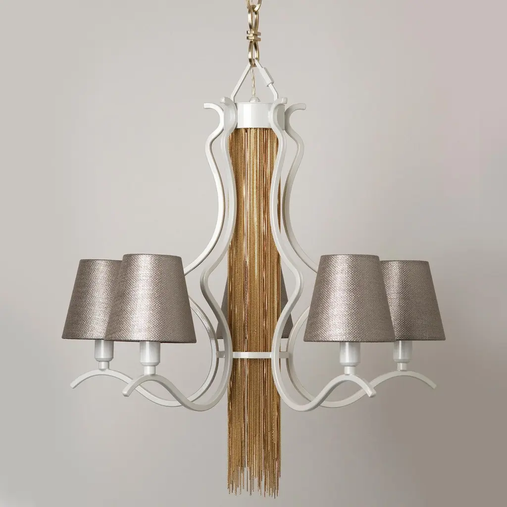 21st Century Sinuosa White Chandelier And Linen Shades By Patrizia Garganti