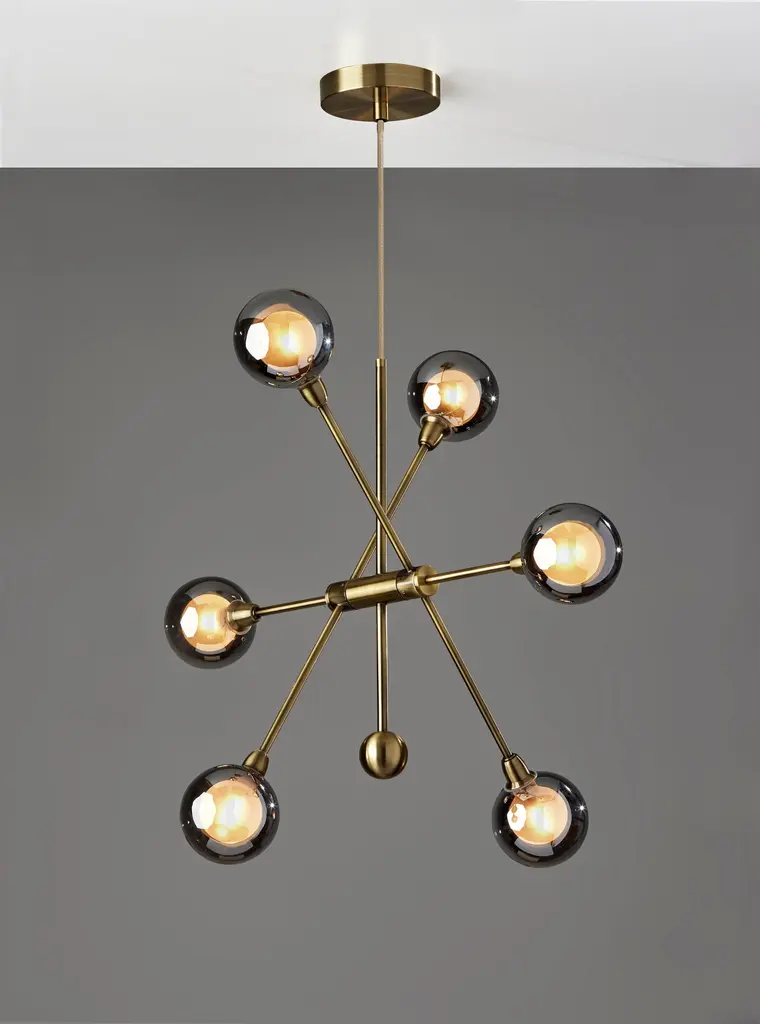 24x27 Antique Brass Metal + Double Layer Glass 6 Light Sputnik Chandelier