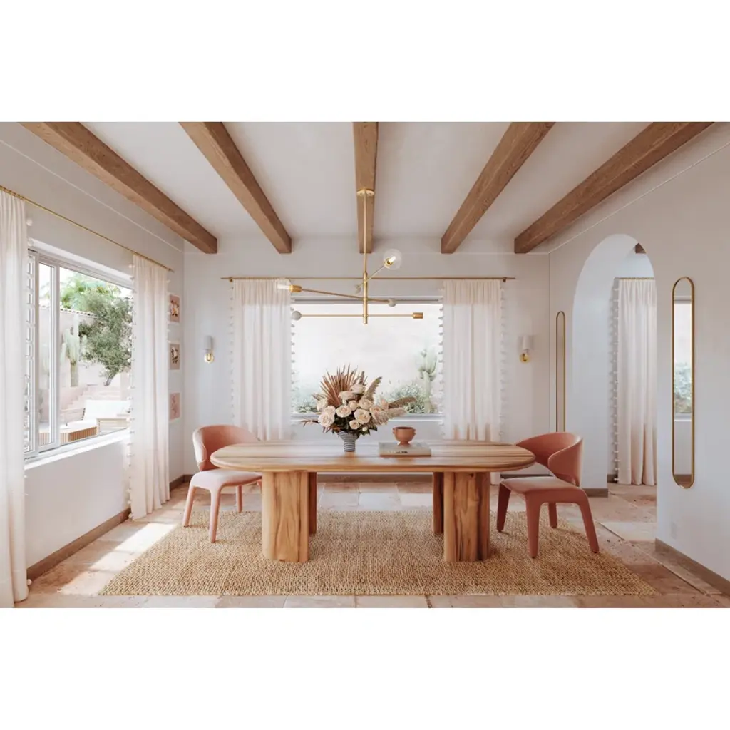 Harmony of the spheres. This sputnik-style chandelier plays with scale, pairing slender, delicately balanced lines with boldly oversized proportions. Whitewashed ash wood orbs serve as counterweights to the three bulbs, adding earthy material contrast to the stellar silhouette.