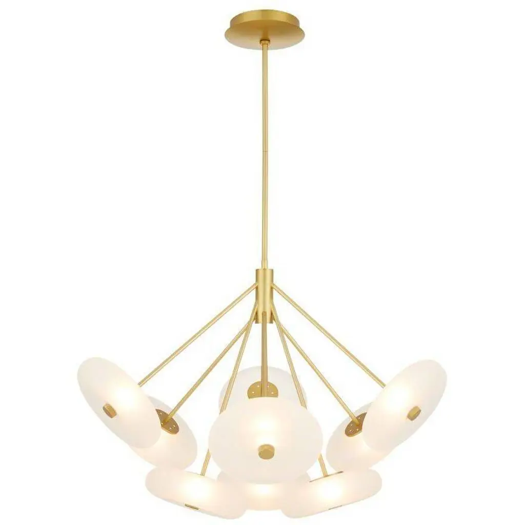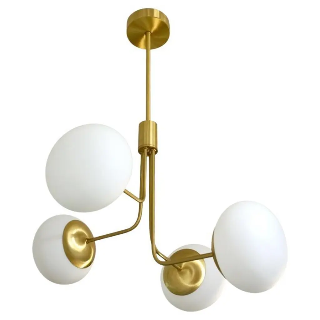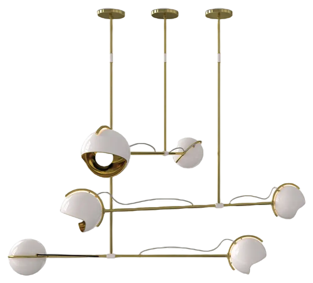 3 Module Yellow And White Bullseye Chandelier With Hand-Blown Glass And Brass